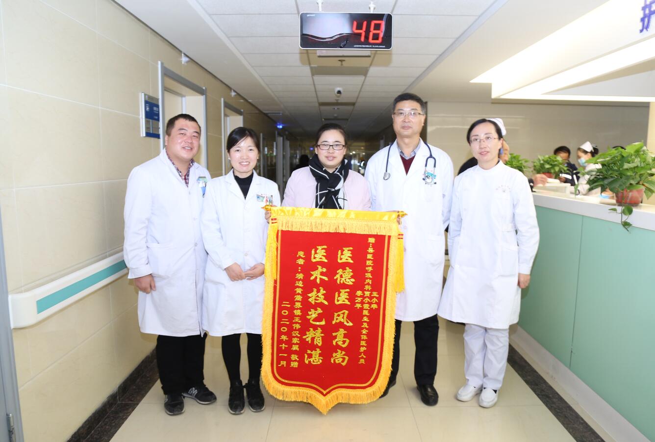 2020年11月患者为呼吸内科贾小霞医生及全体医护人员送上感谢锦旗