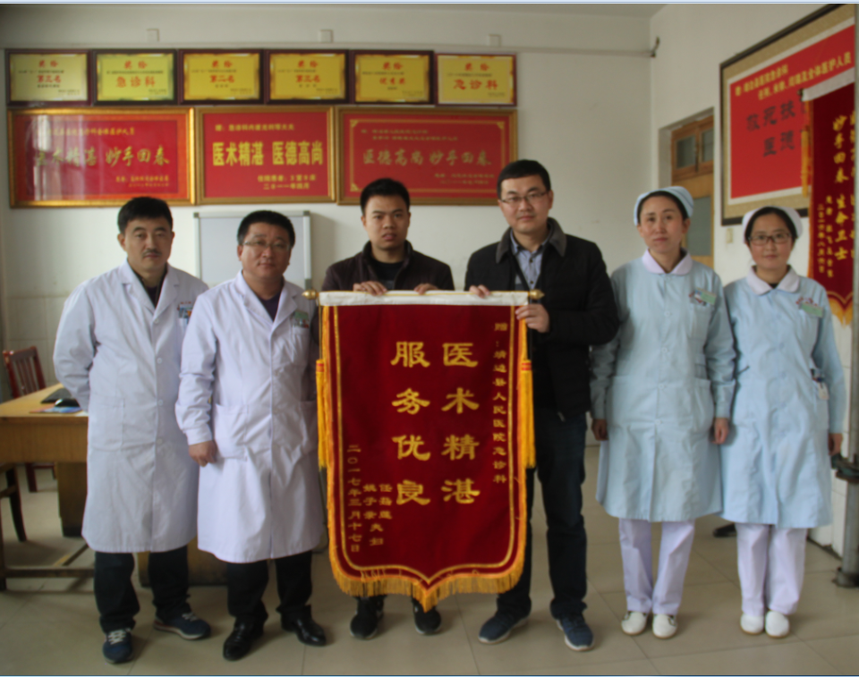 2017年(患者家属为急诊科医务人员送感谢锦旗)