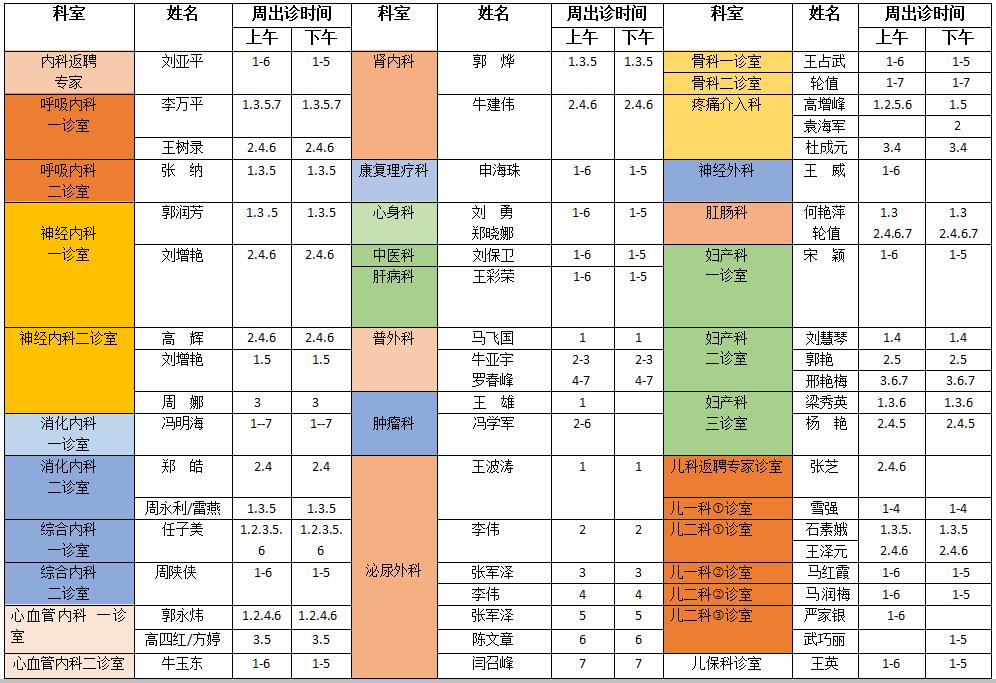 2022年8月28日至9月4日门诊安排表