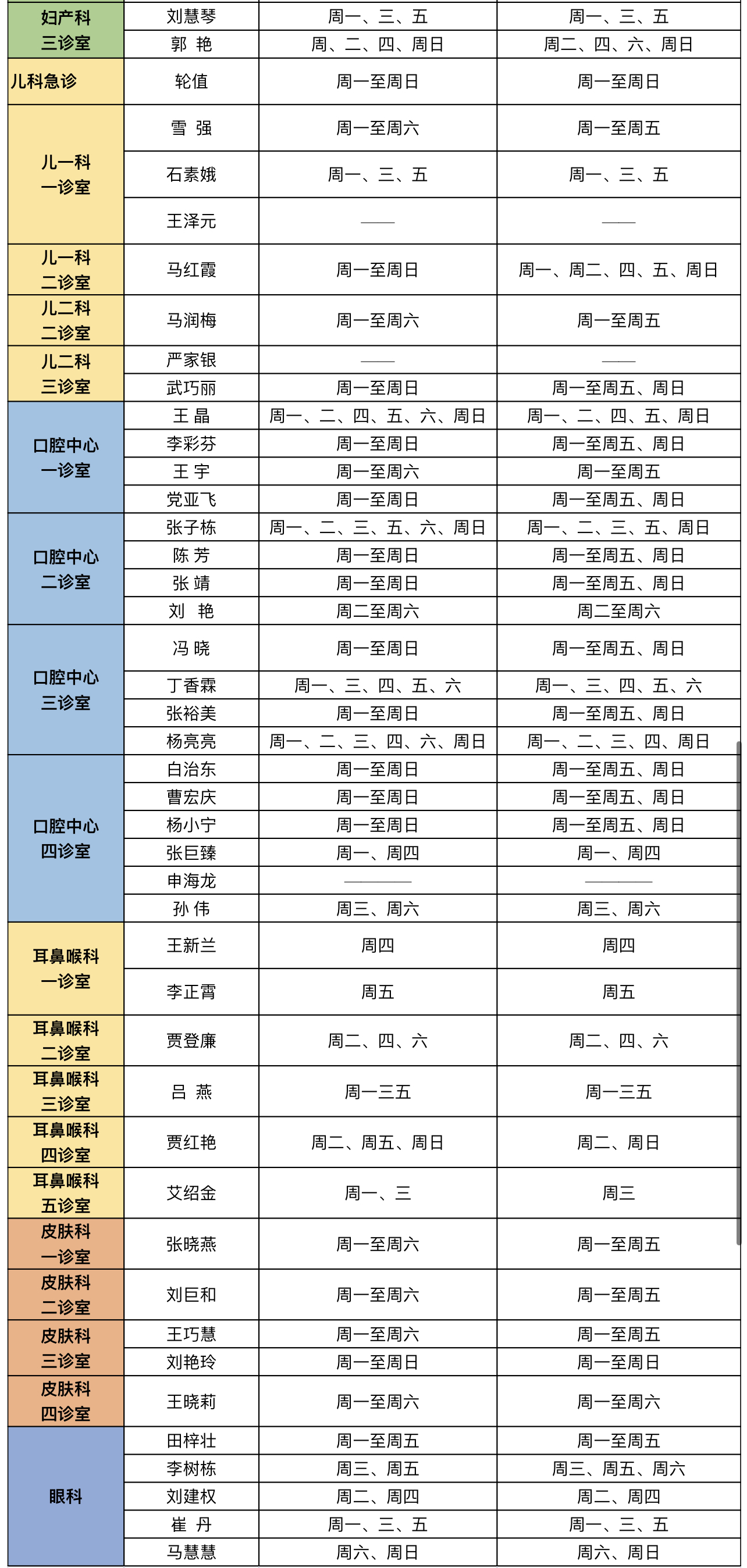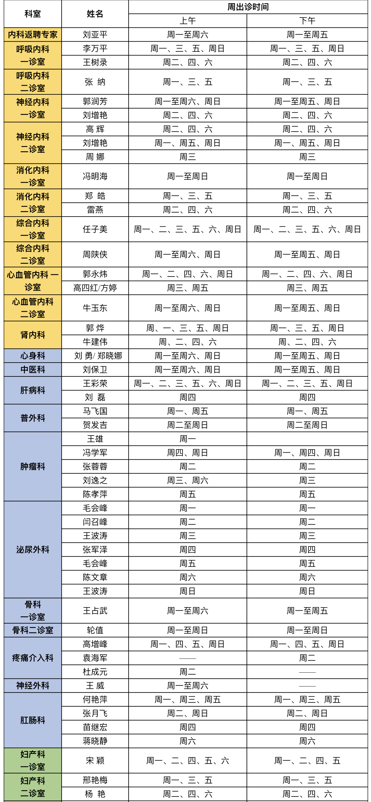 靖边县人民医院本周门诊专家坐诊表(4月17日—4月23日)