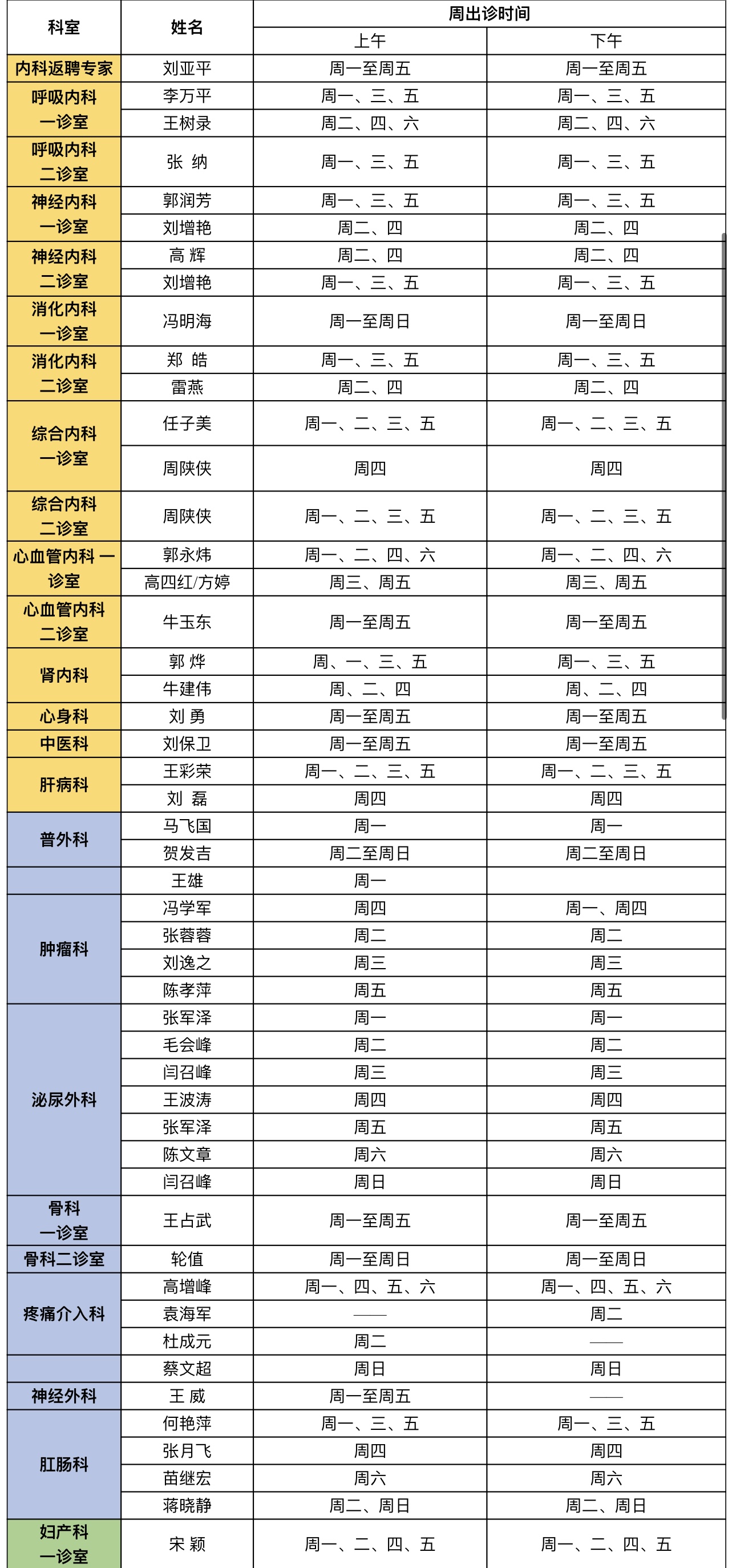 门诊安排