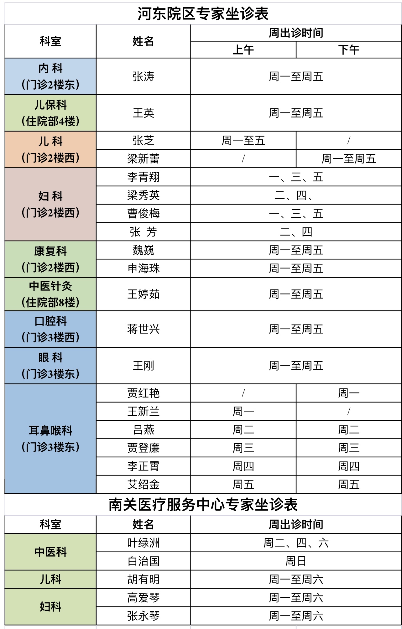 靖边县人民医院本周门诊专家坐诊表(4月24日—4月30日)