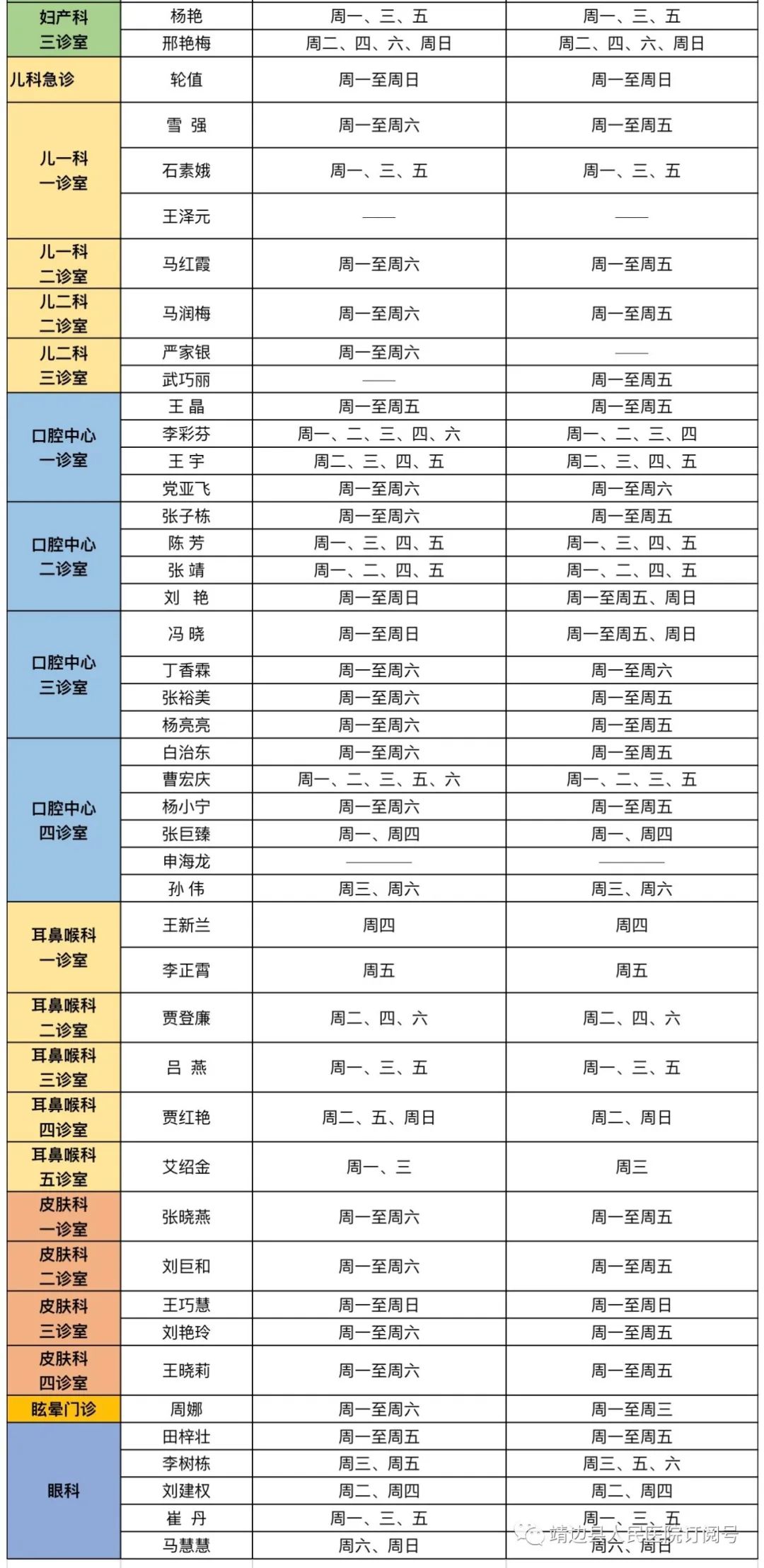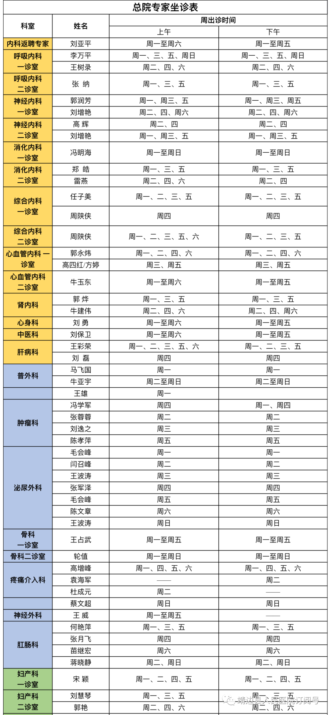 靖边县人民医院门诊专家出诊信息(5月15日—5月21日)