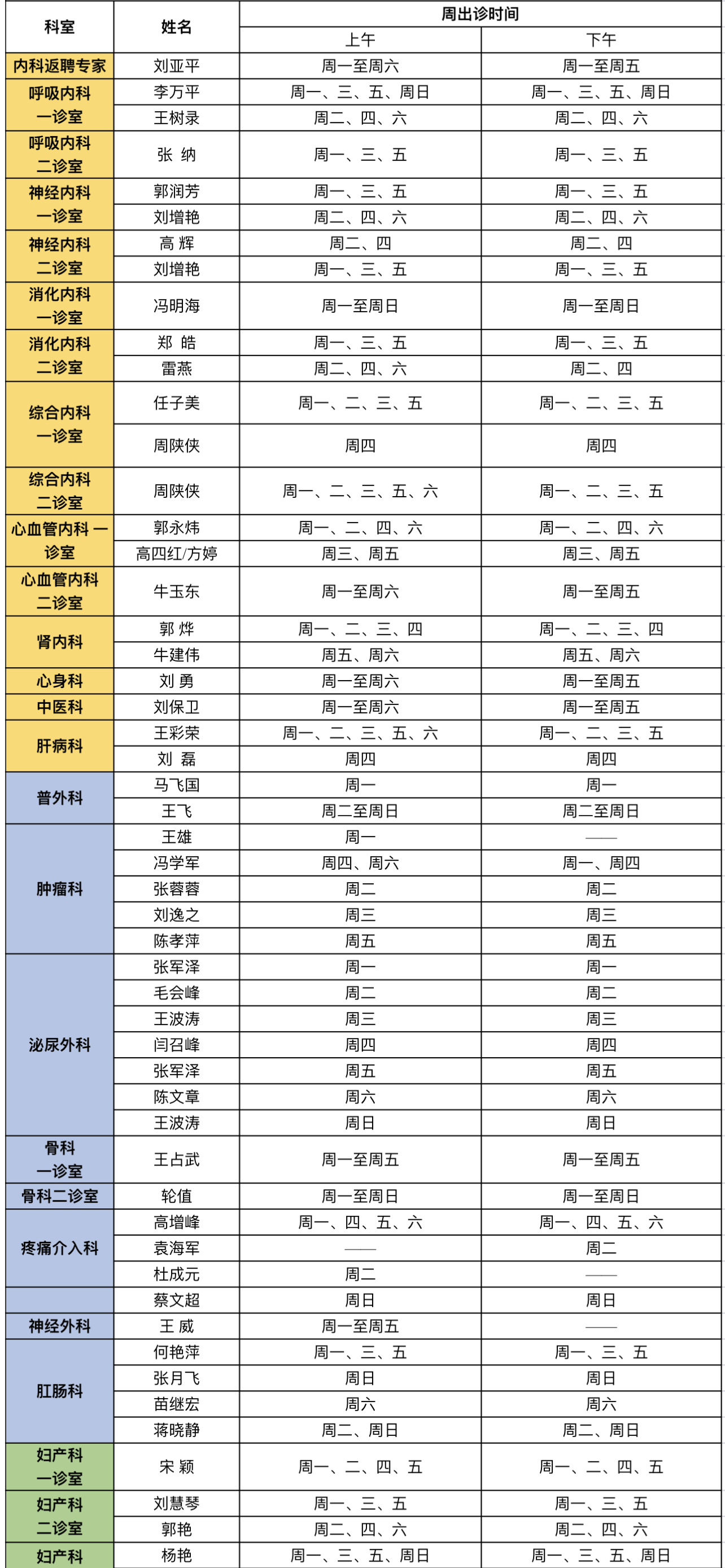 门诊安排