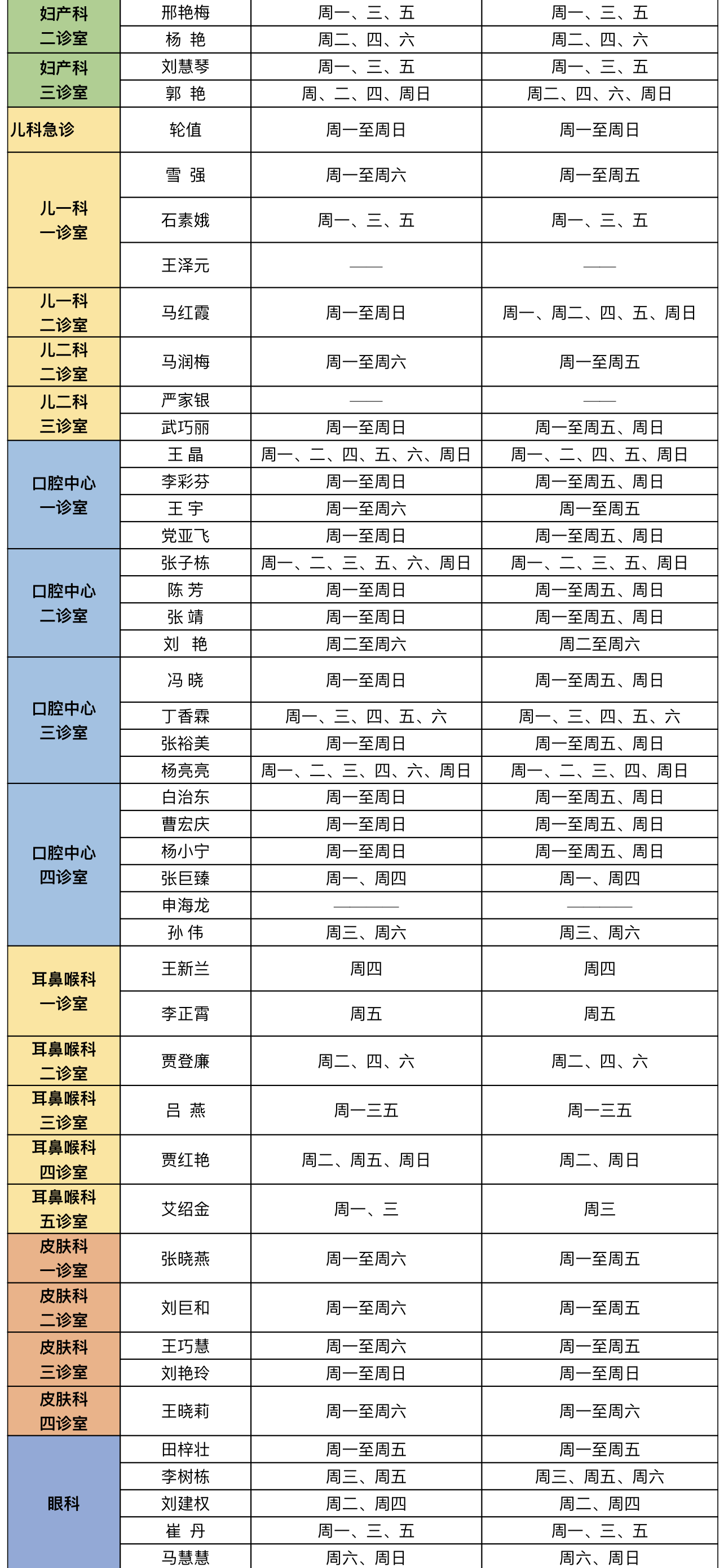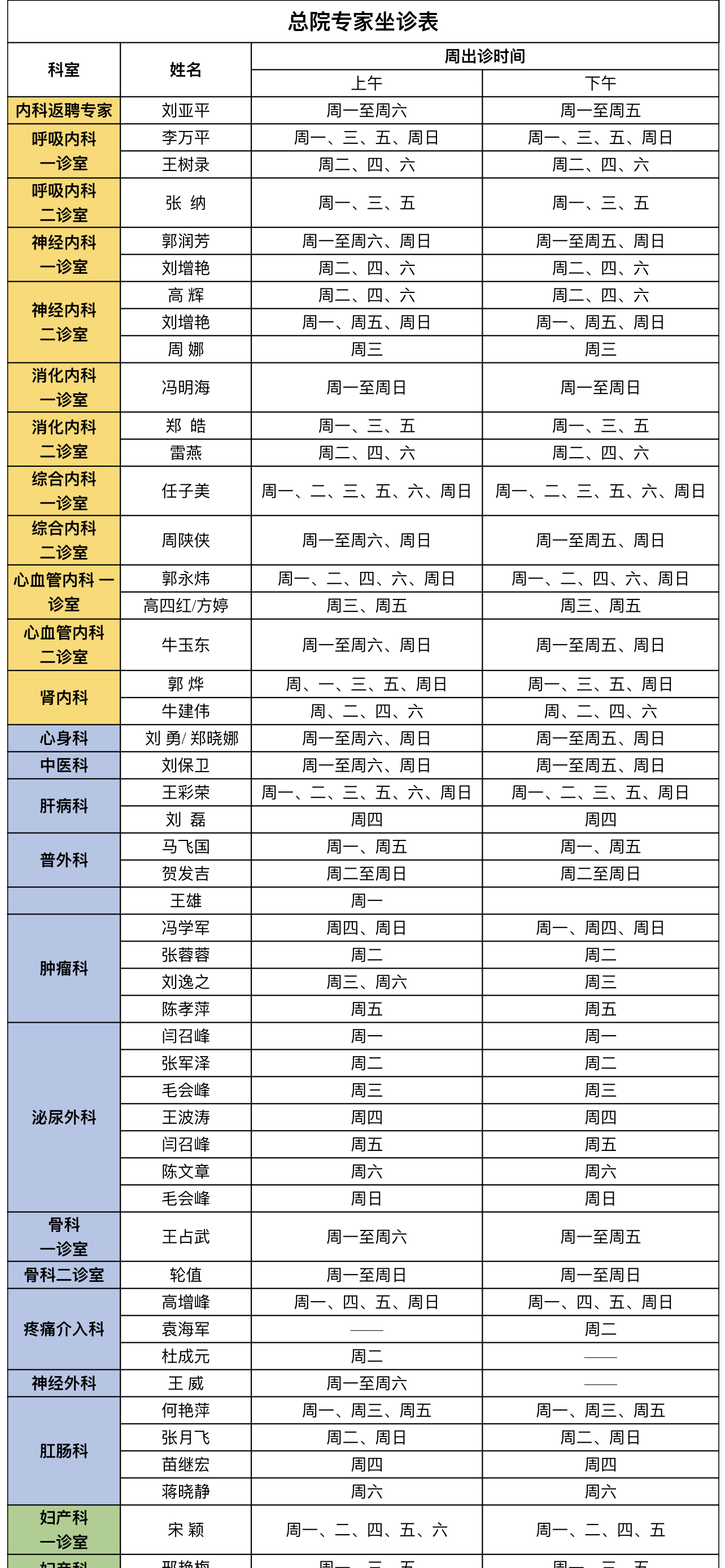 靖边县人民医院门诊专家出诊信息(6月12日—6月18日)