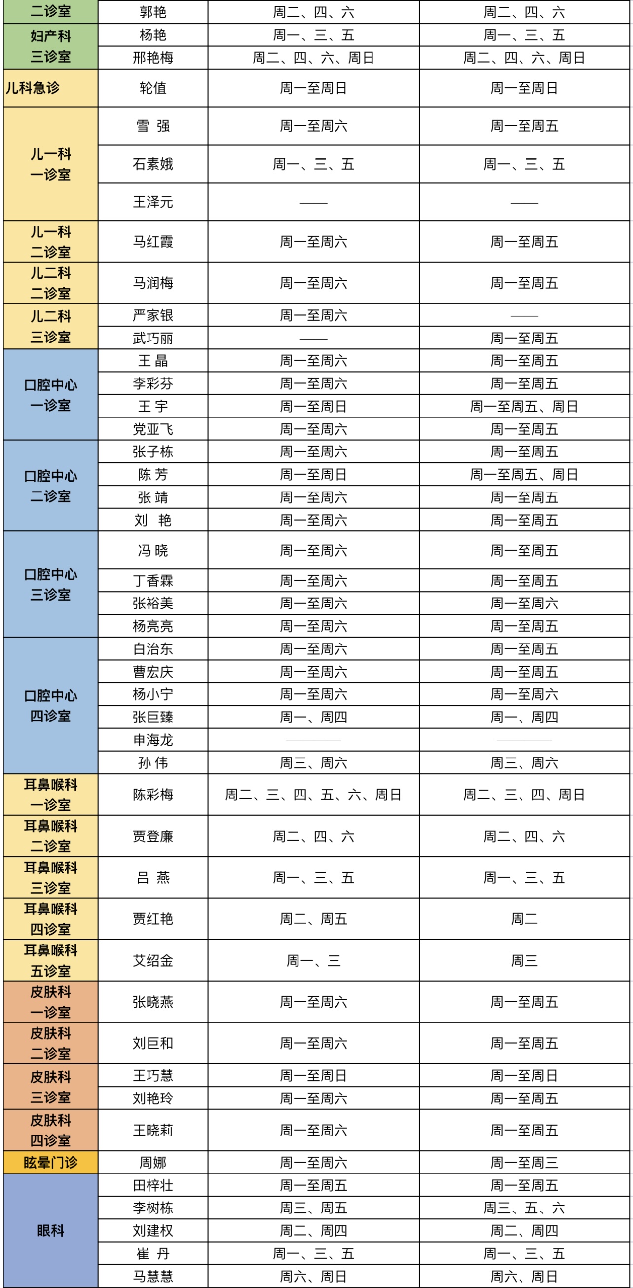 靖边县人民医院门诊专家出诊信息(7月17日—7月23日)