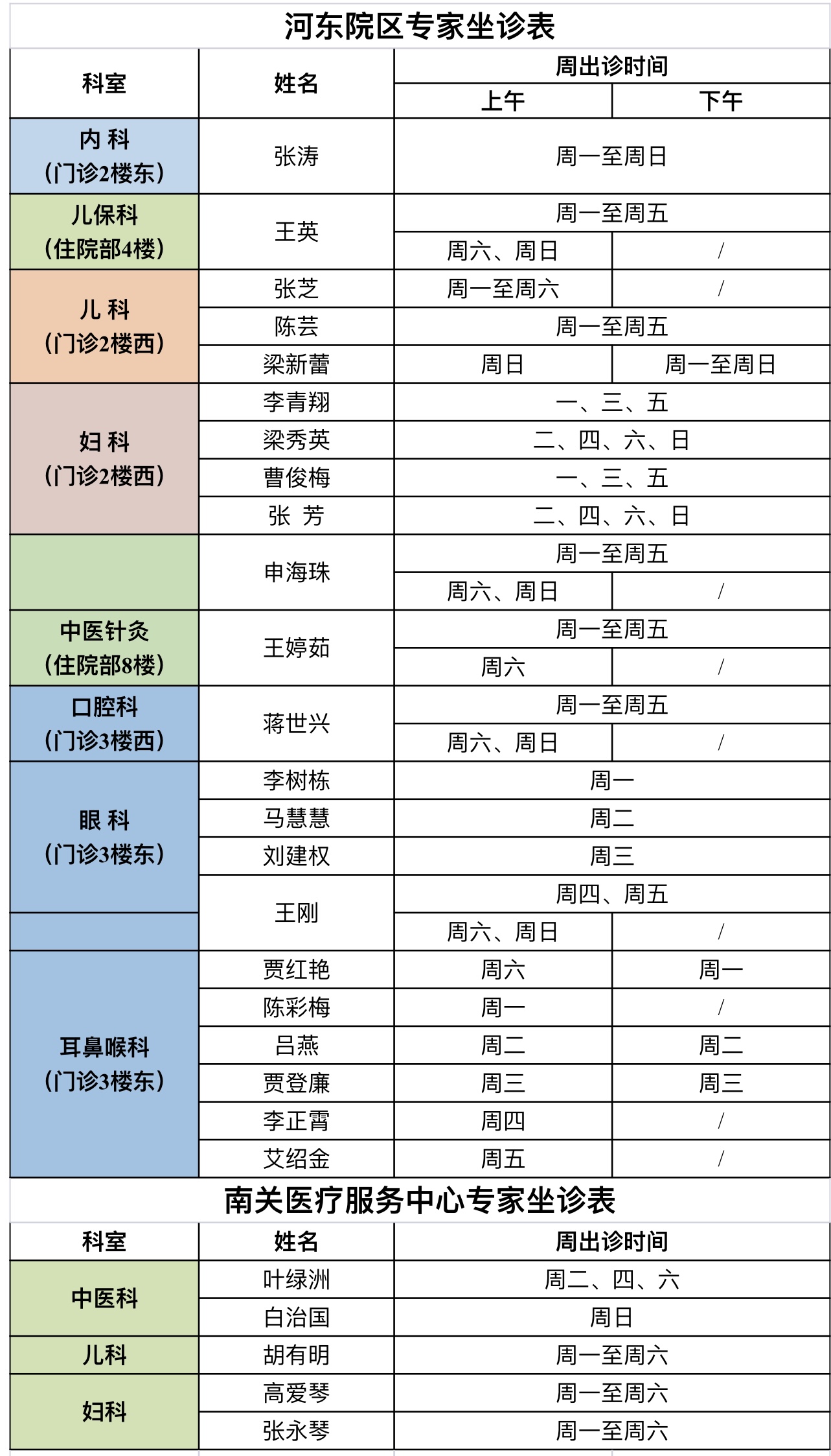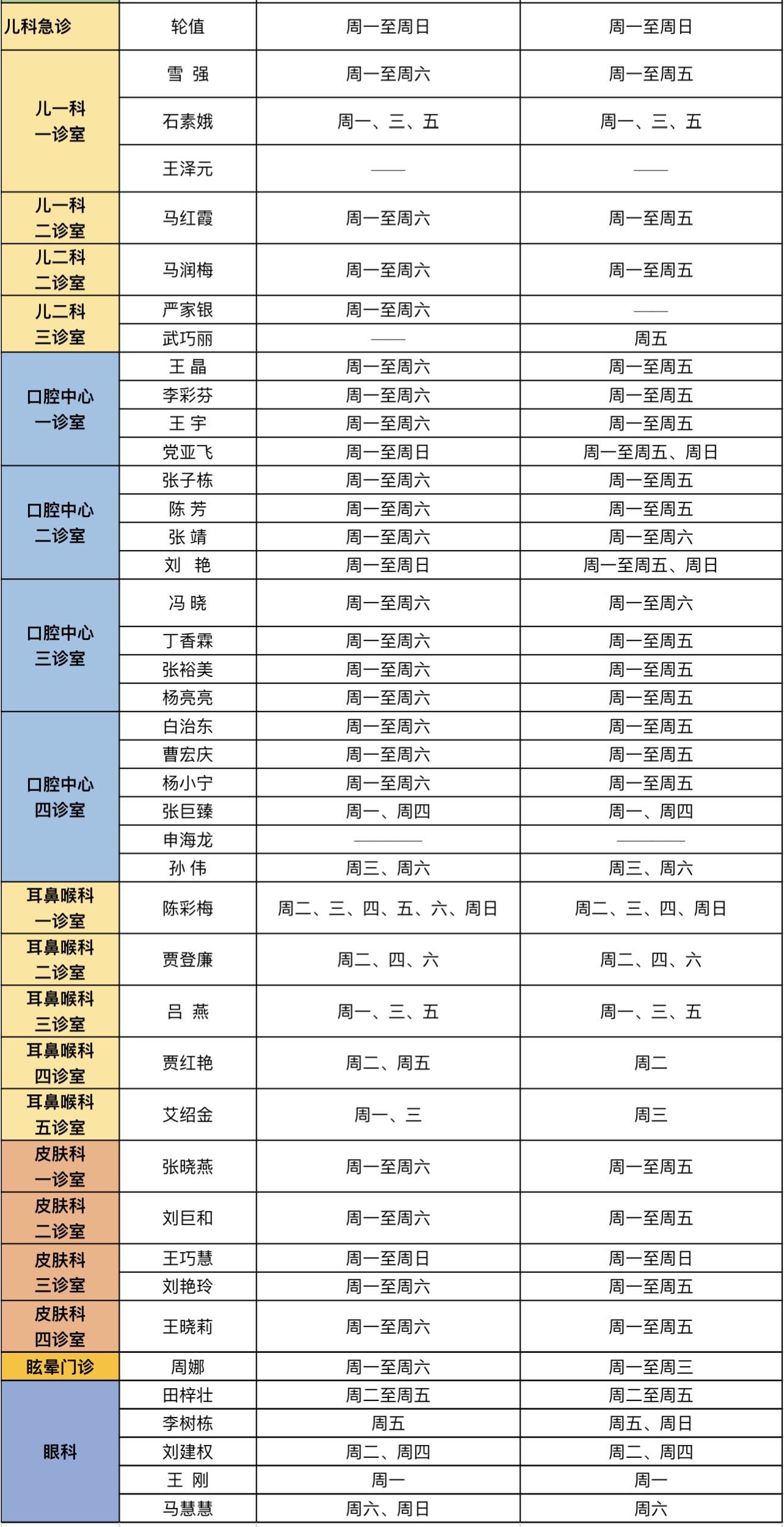 门诊安排