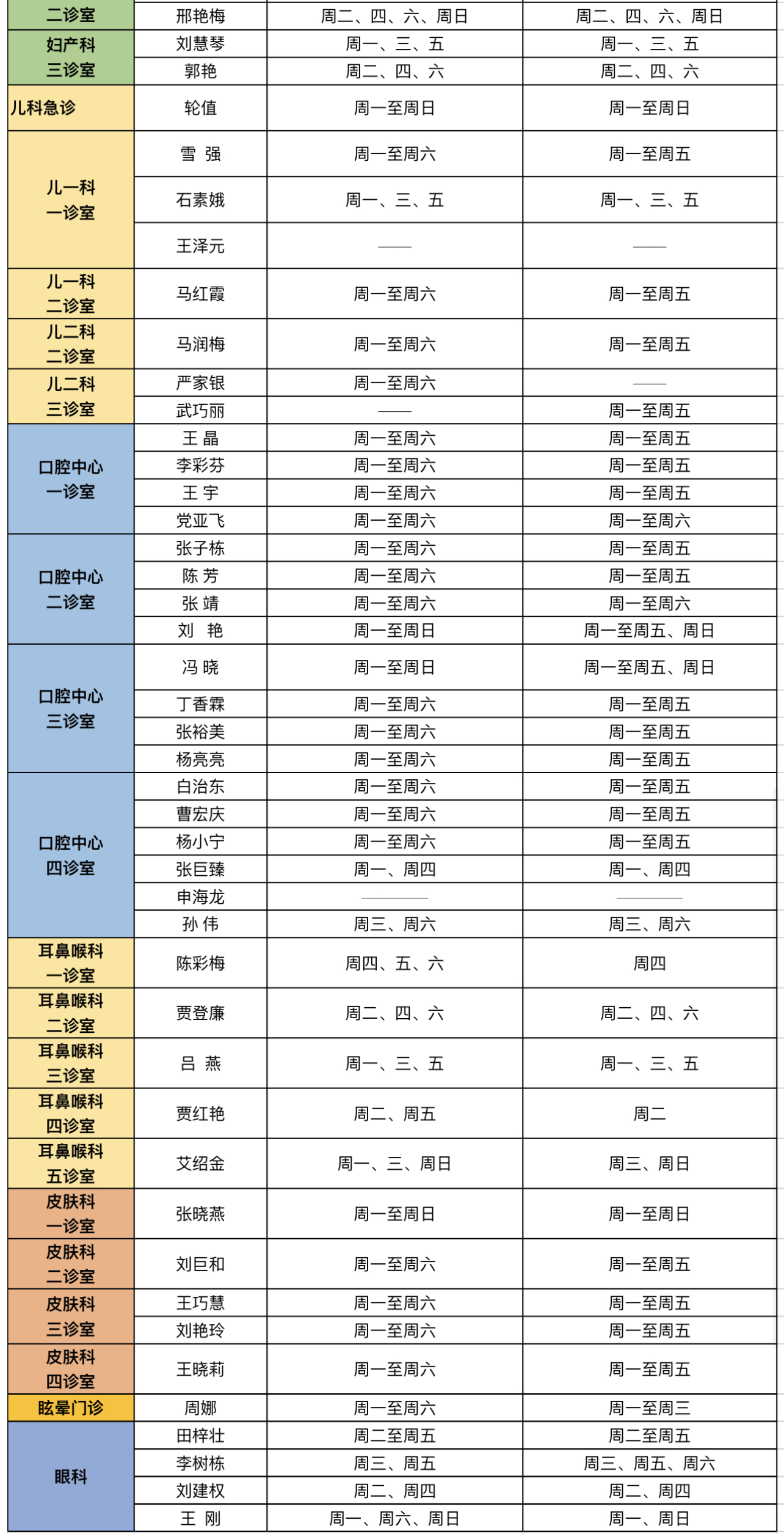 靖边县人民医院门诊专家出诊信息(9月4日—9月10日)