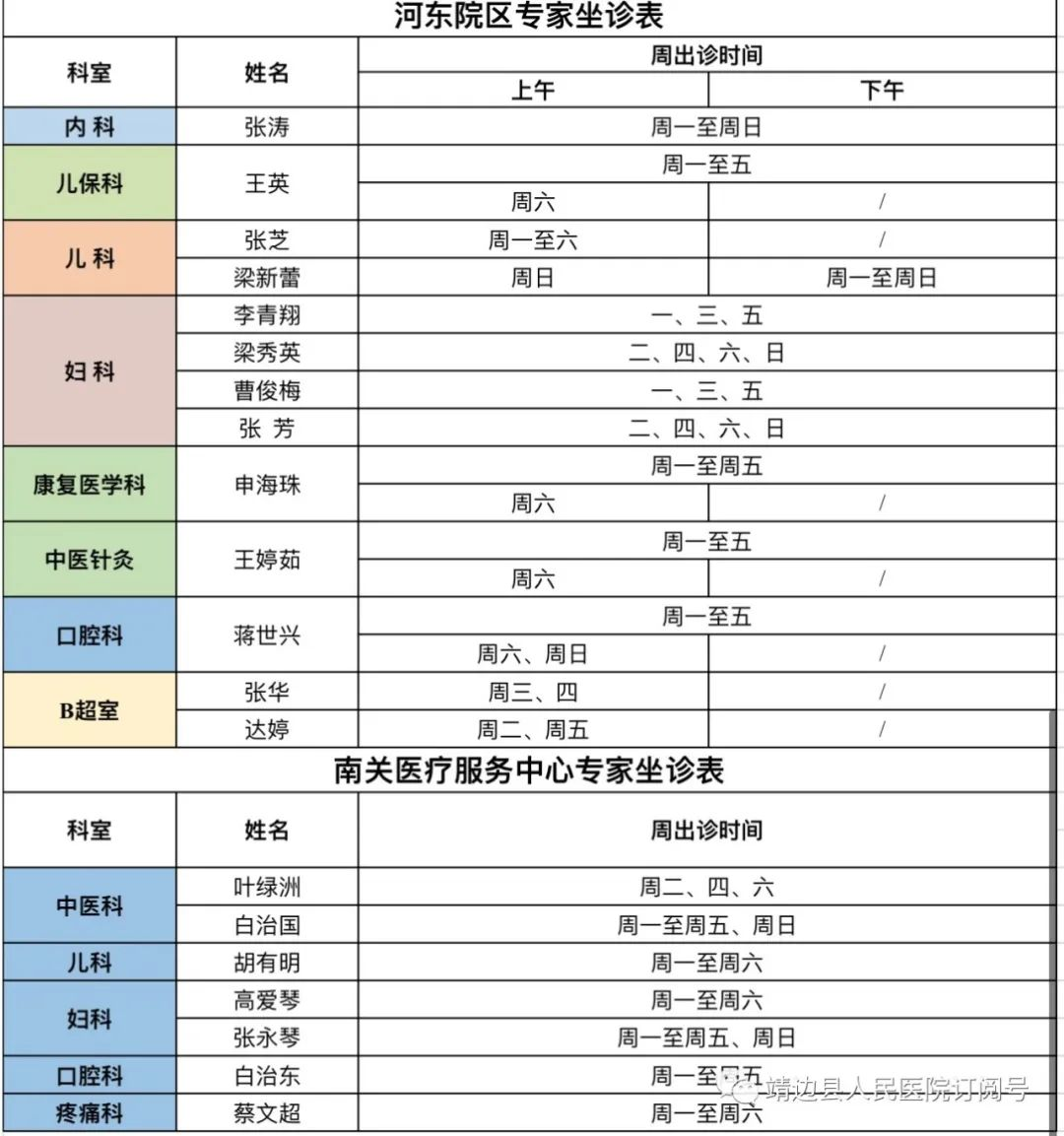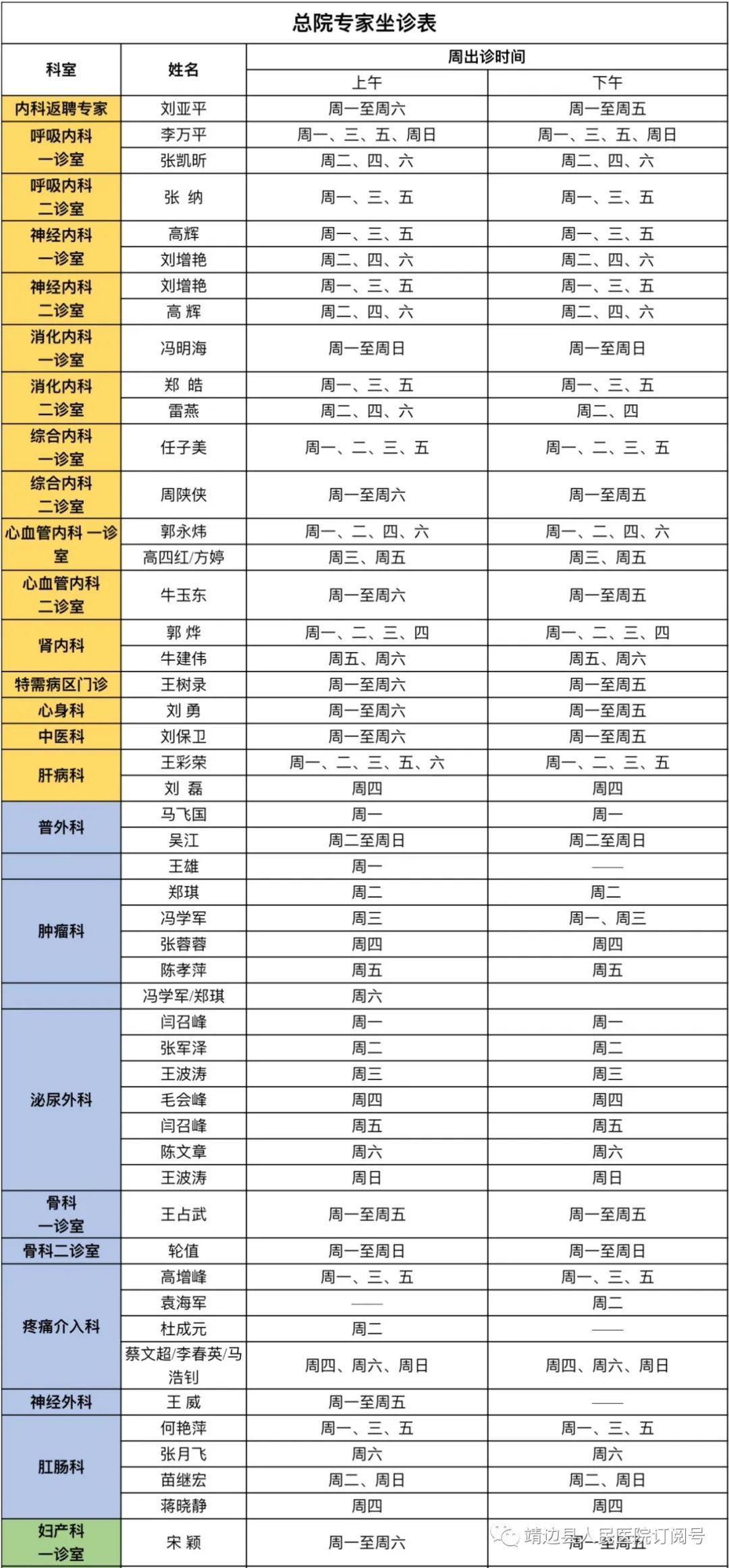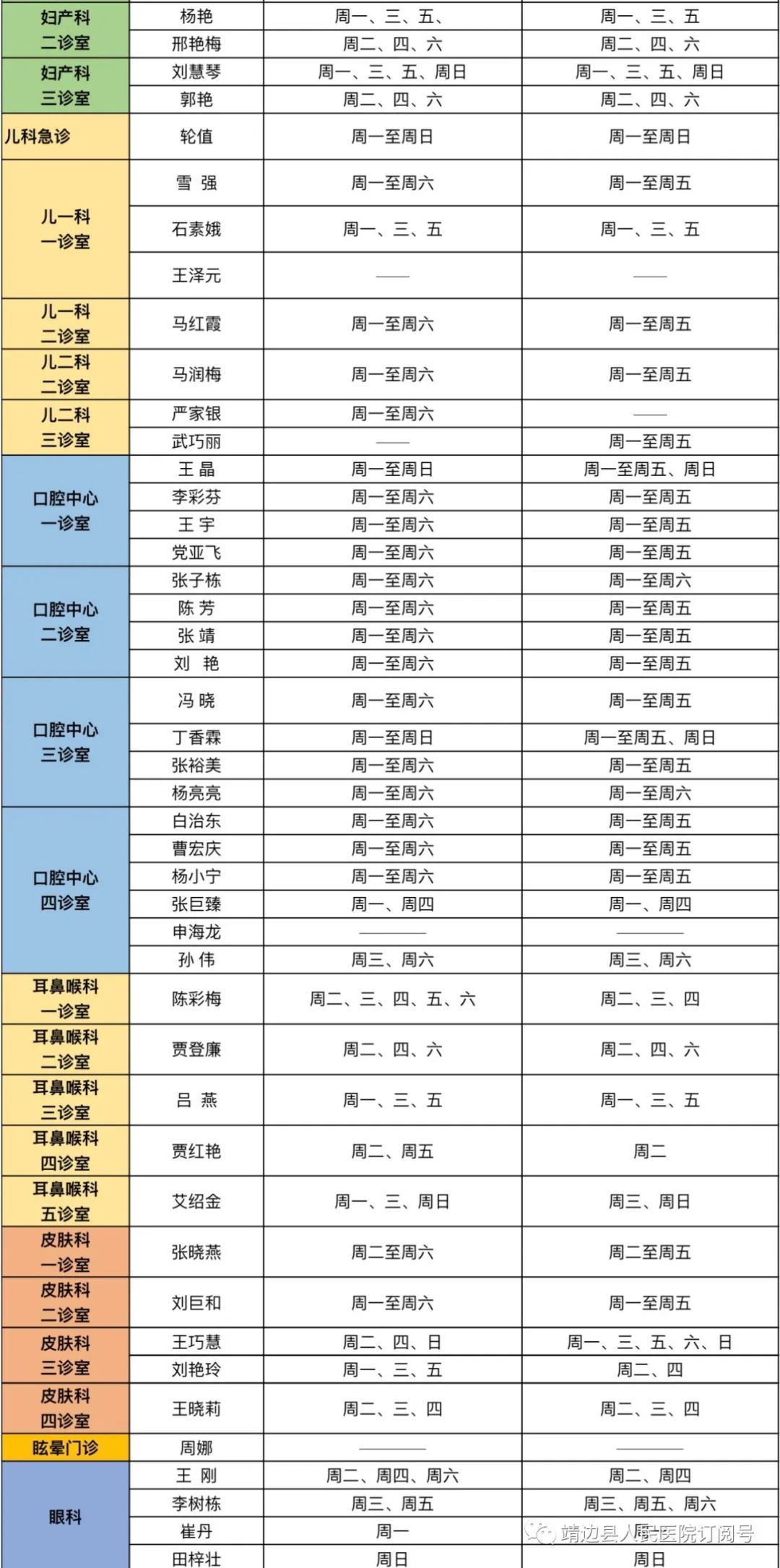 靖边县人民医院门诊专家出诊信息(10月9日—10月15日)
