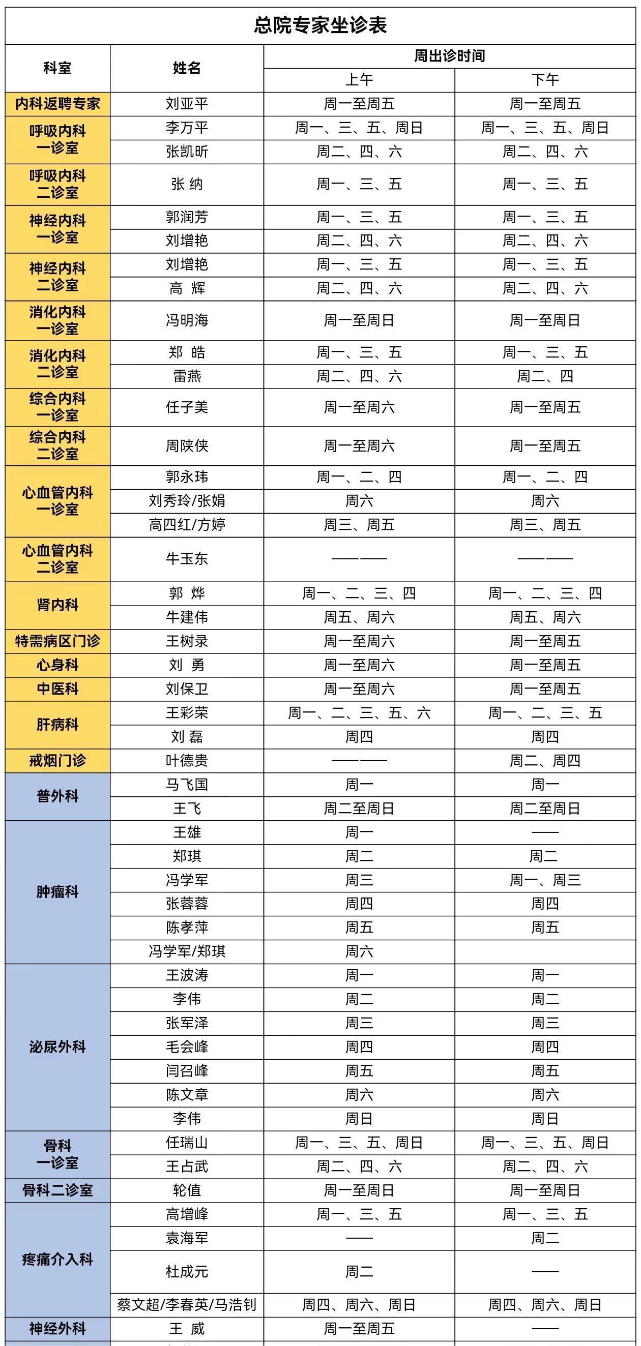 靖边县人民医院门诊专家出诊信息(3月18日—3月24日)
