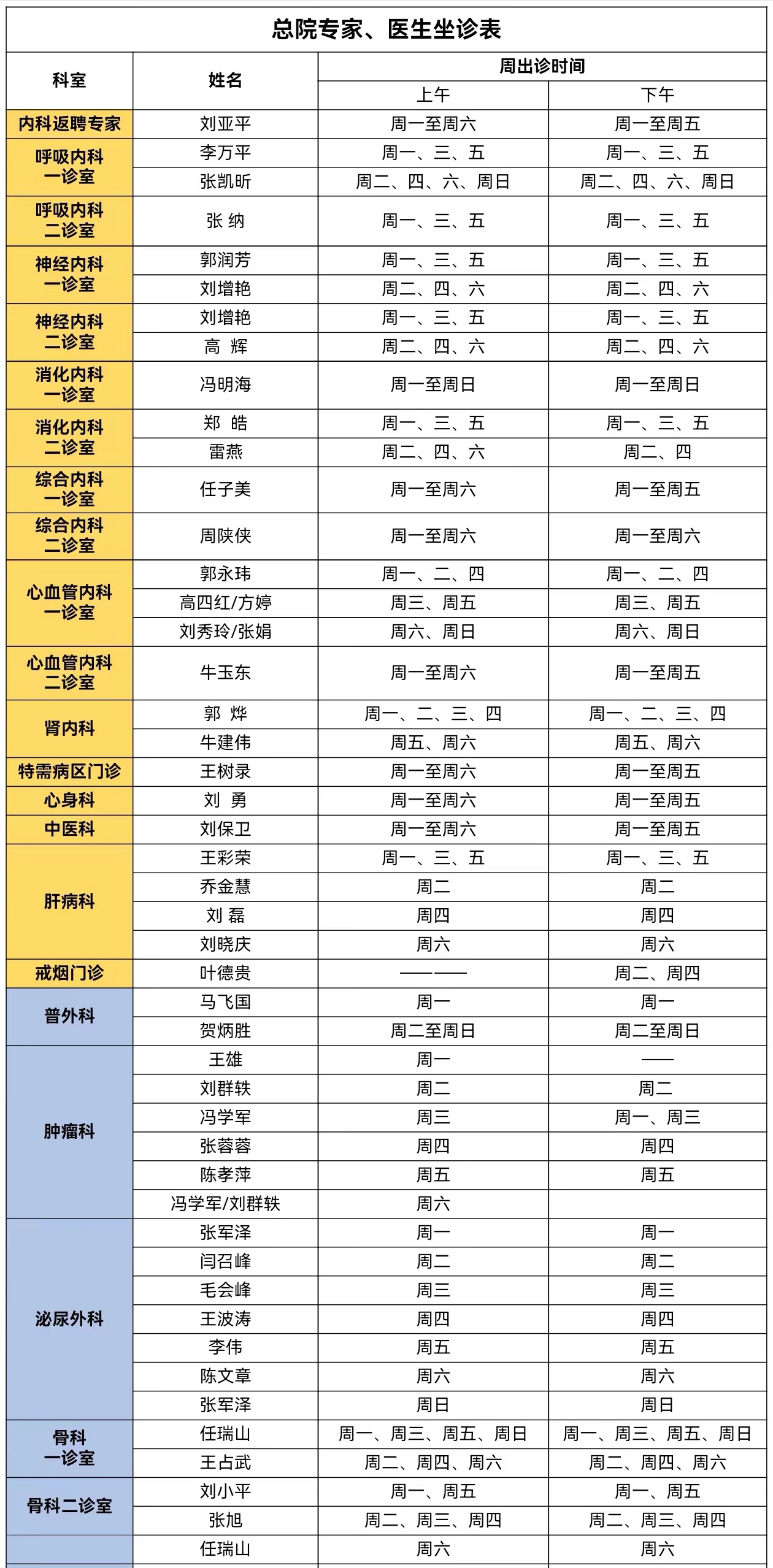 靖边县人民医院门诊专家、医生出诊信息(5月20日—5月26日)