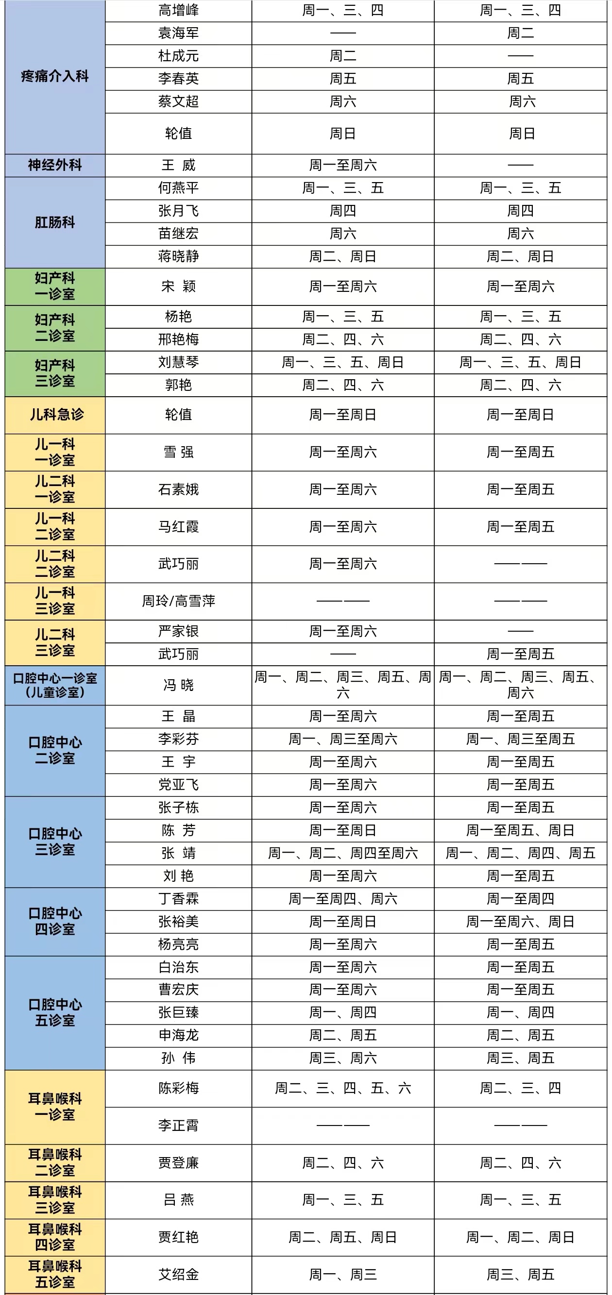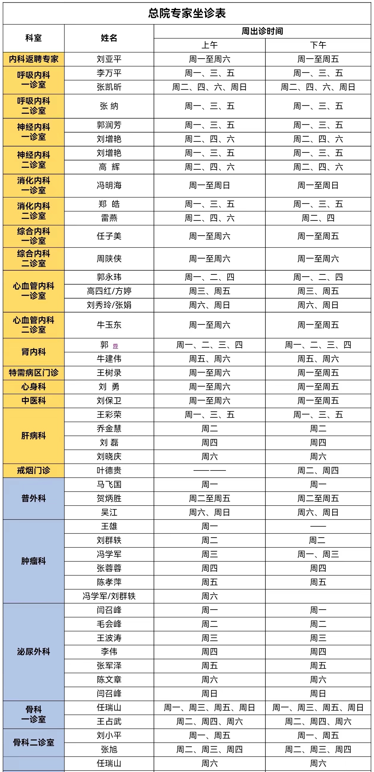 靖边县人民医院门诊专家、医生出诊信息(5月27日—6月2日)