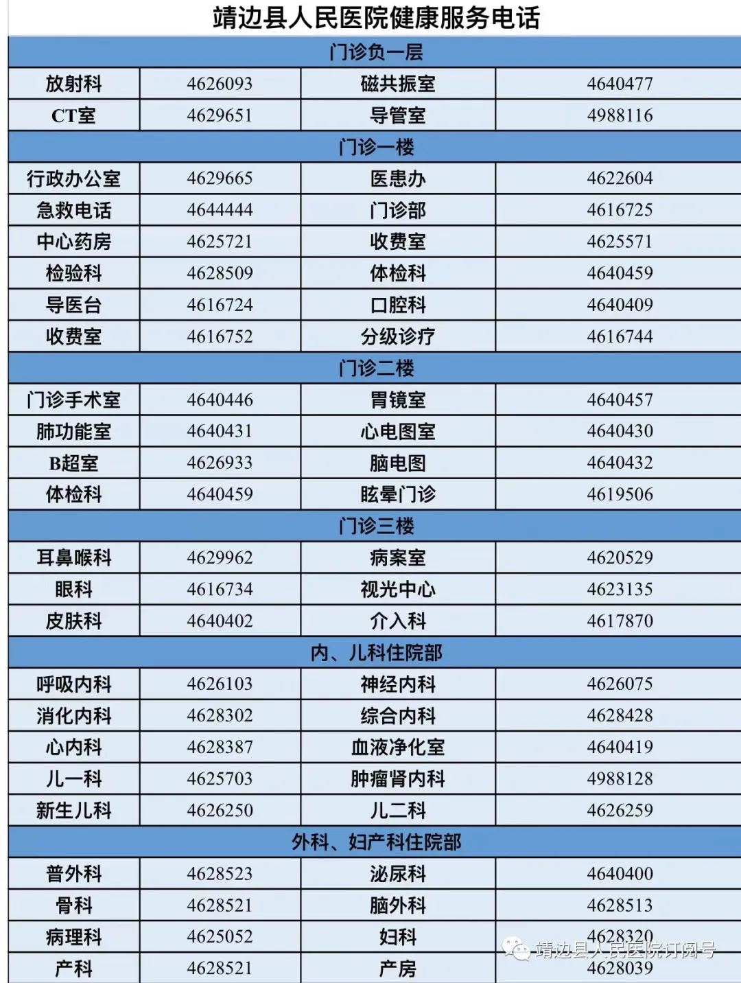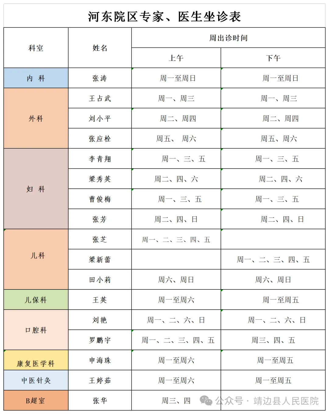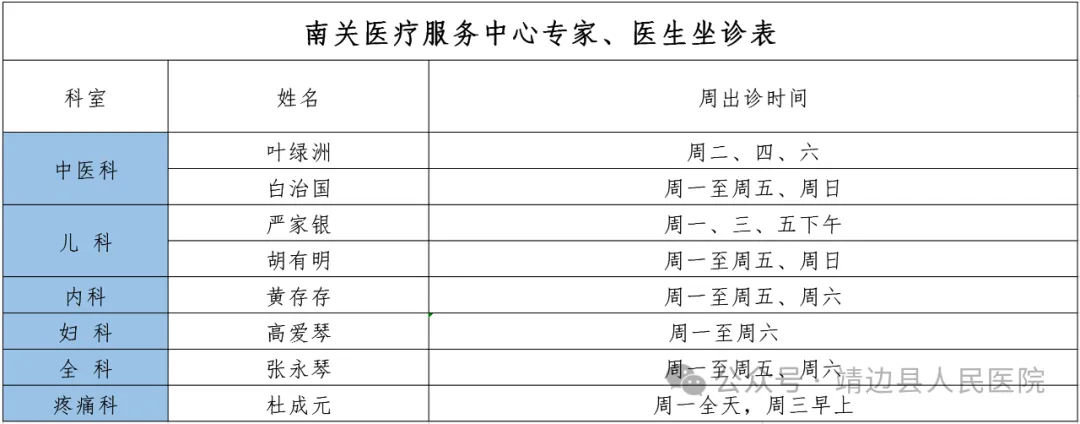 靖边县人民医院门诊专家、医生出诊信息(6月3日—6月9日)