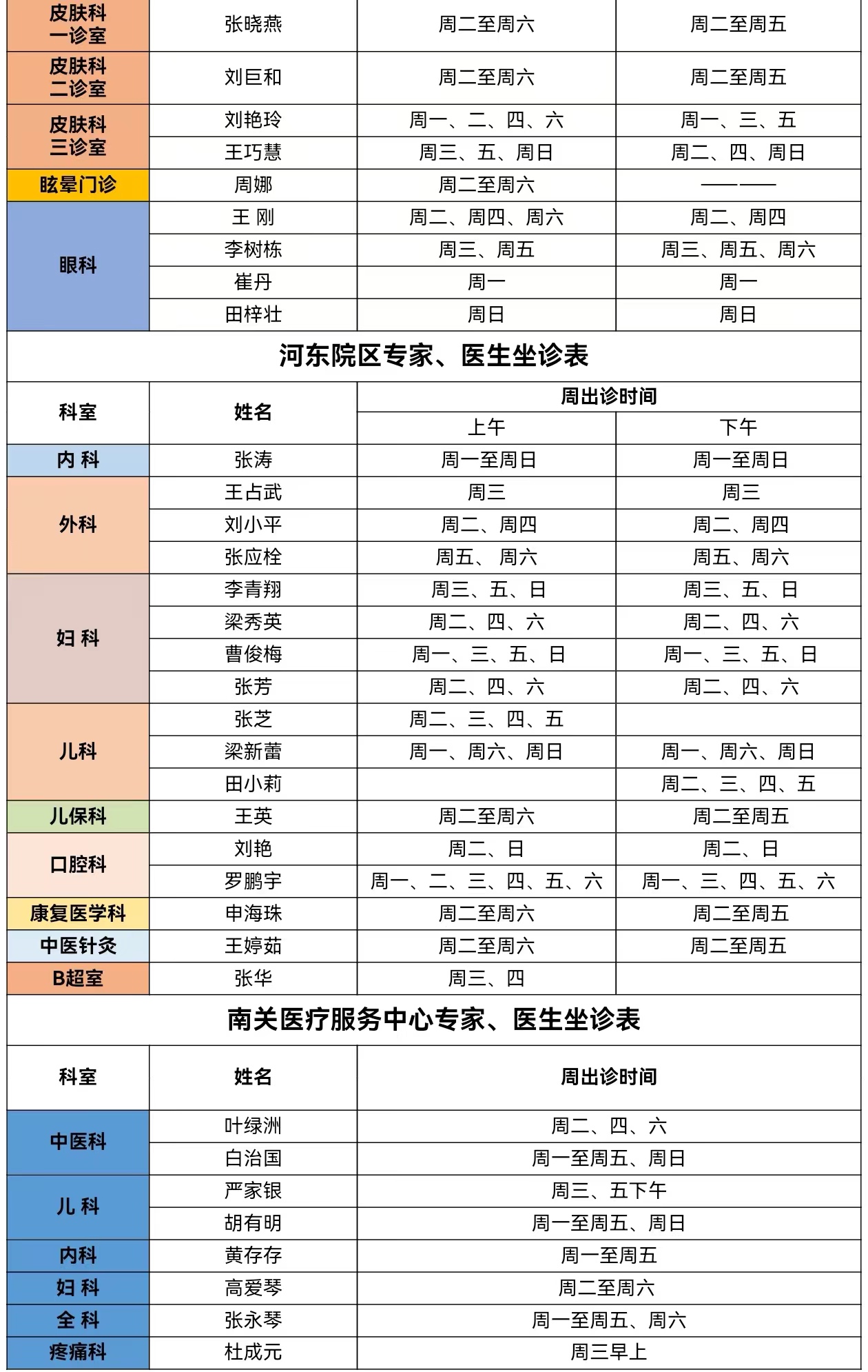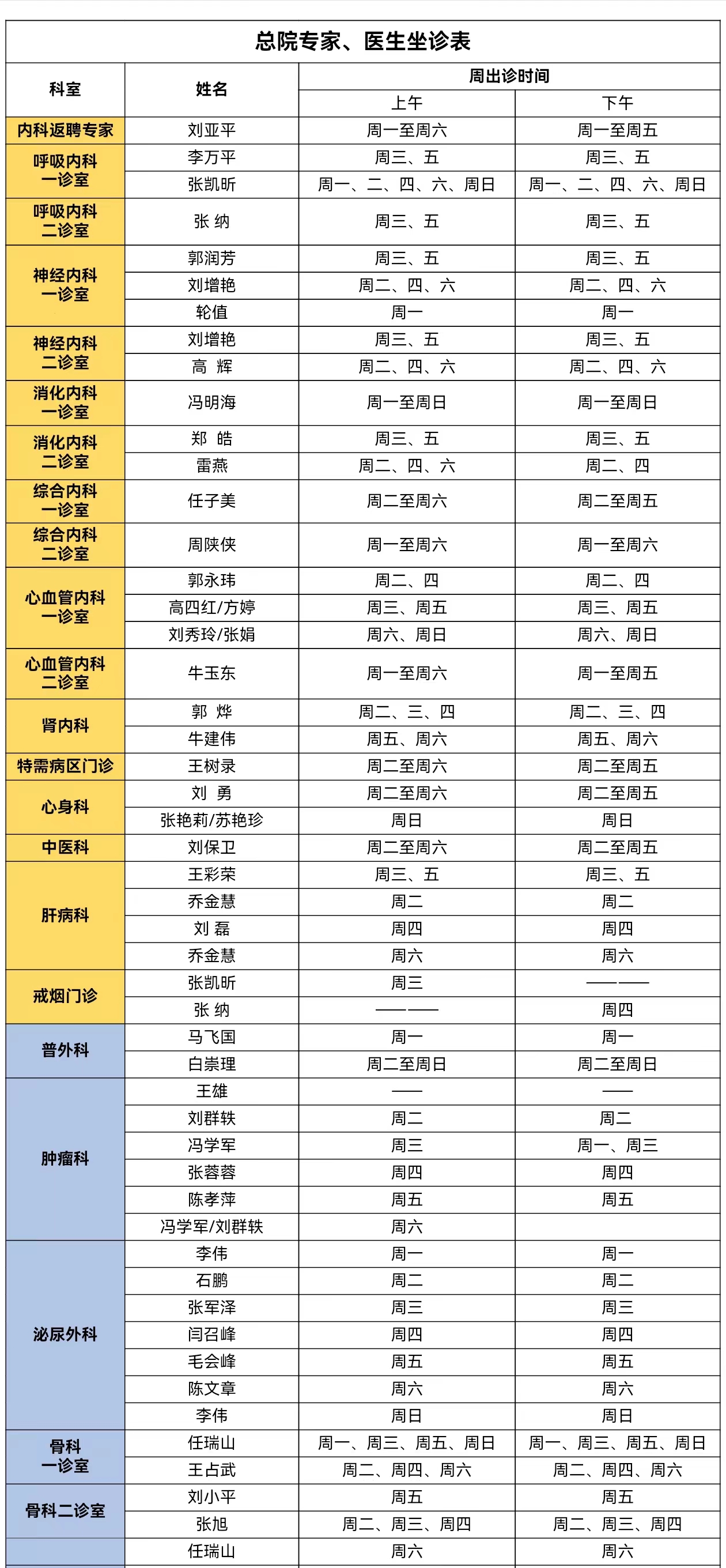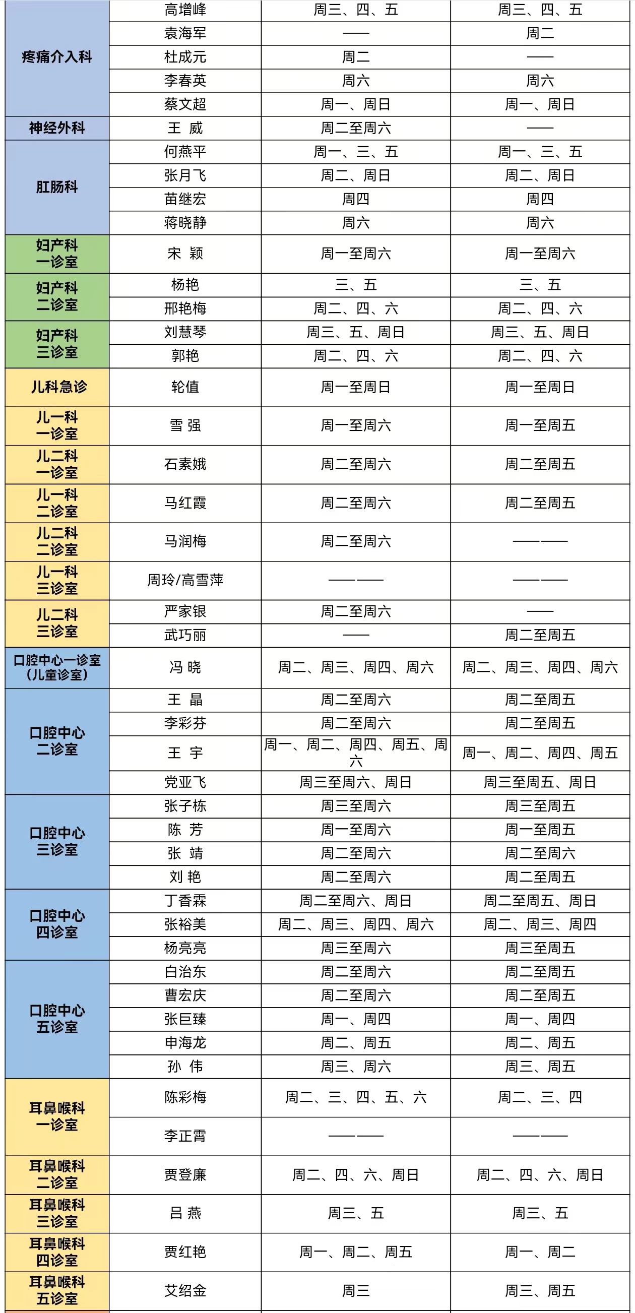 靖边县人民医院门诊专家、医生出诊信息(6月10日—6月16日)