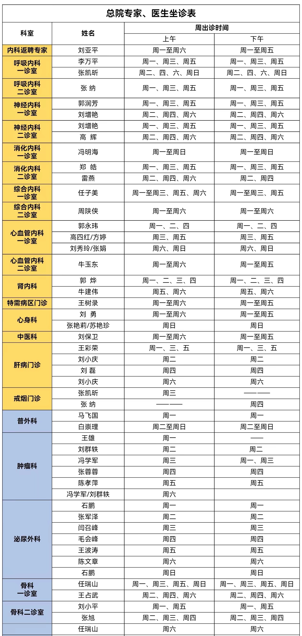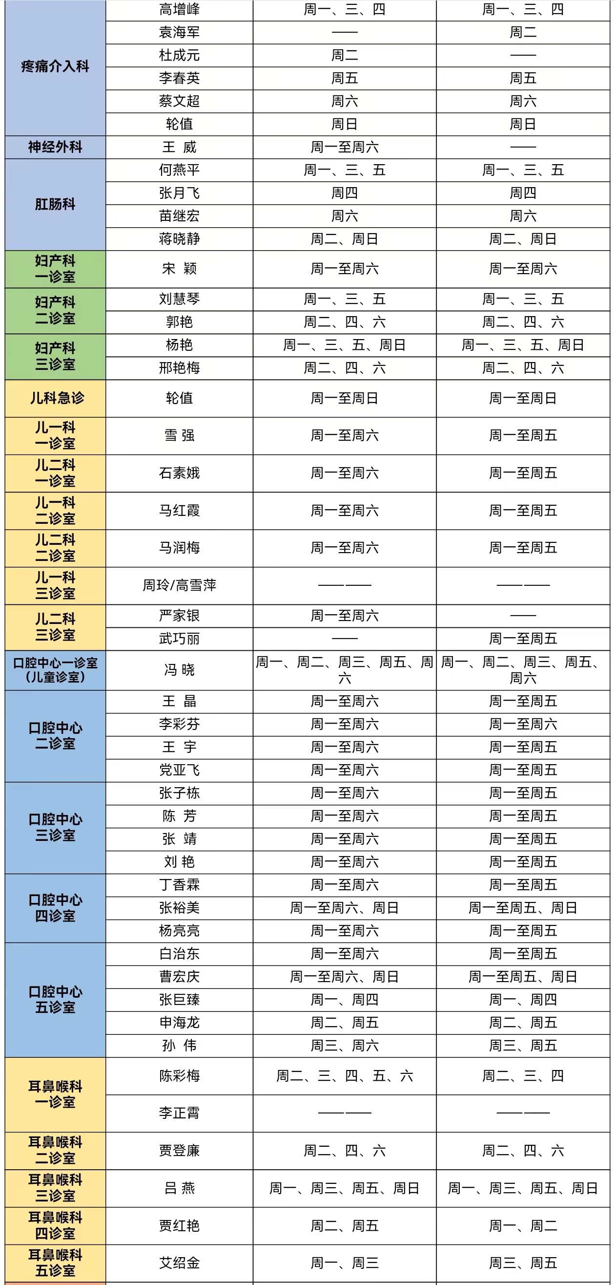 靖边县人民医院门诊专家、医生出诊信息(6月17日—6月23日)