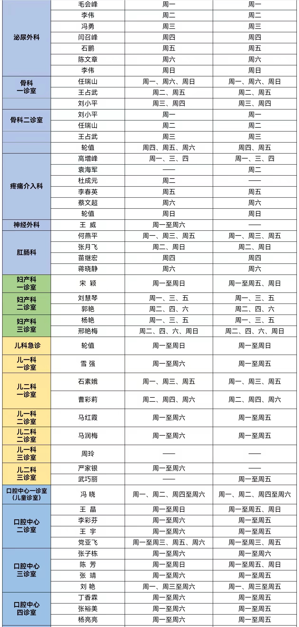 靖边县人民医院门诊专家、医生出诊信息(10月14日—10月20日)