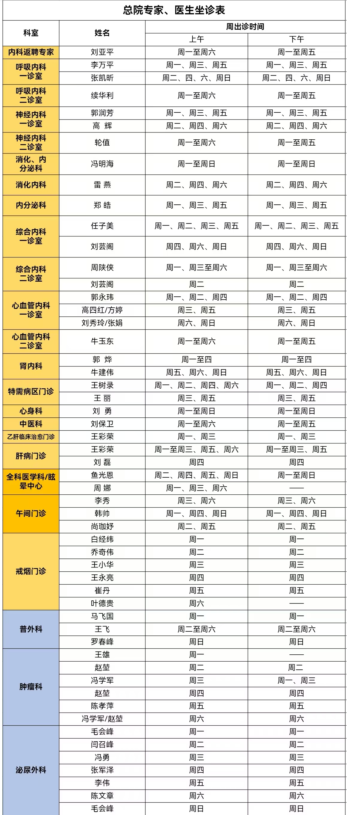 门诊安排