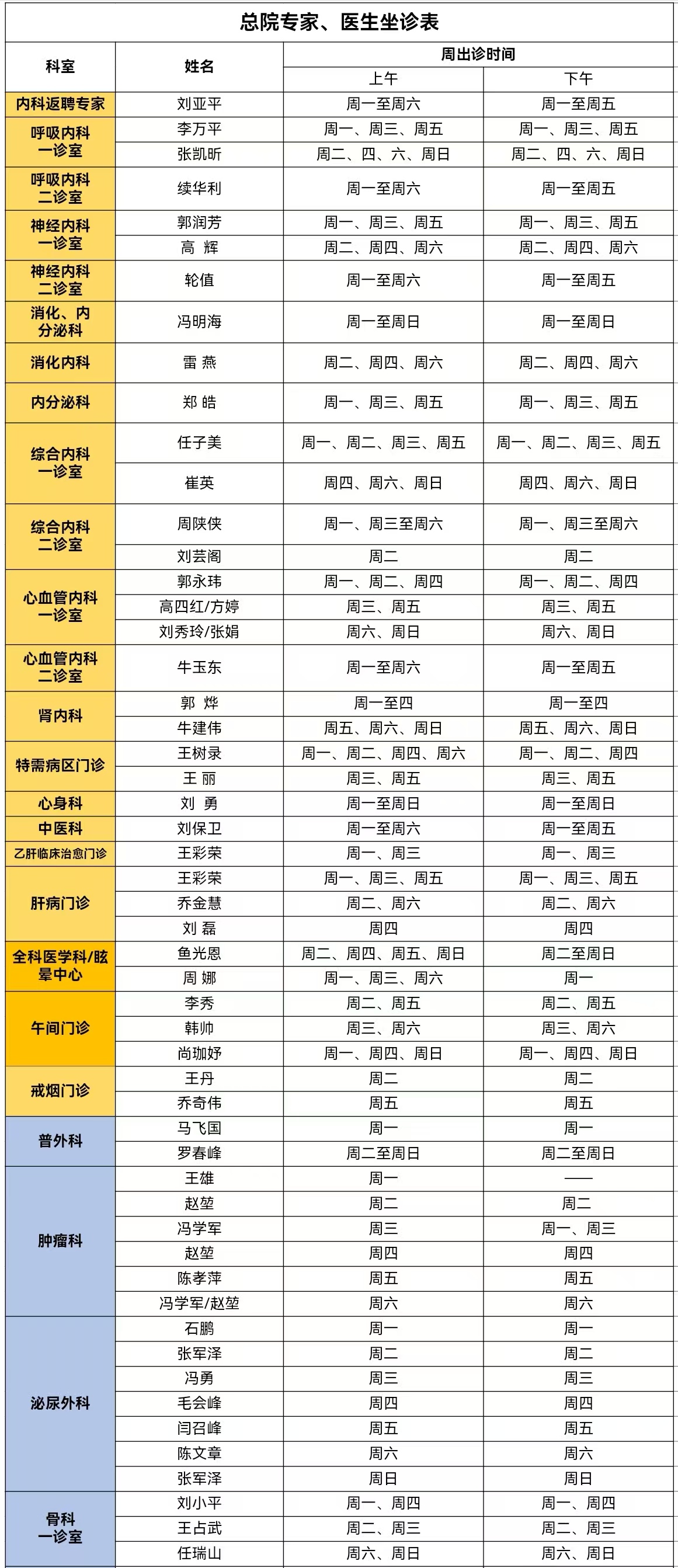 靖边县人民医院门诊专家、医生出诊信息(12月16日—12月22日)