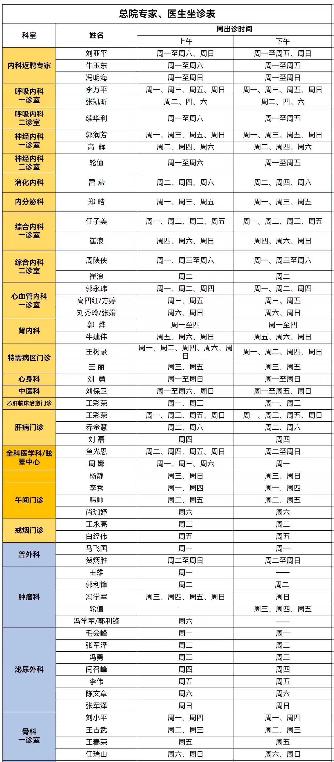 门诊安排