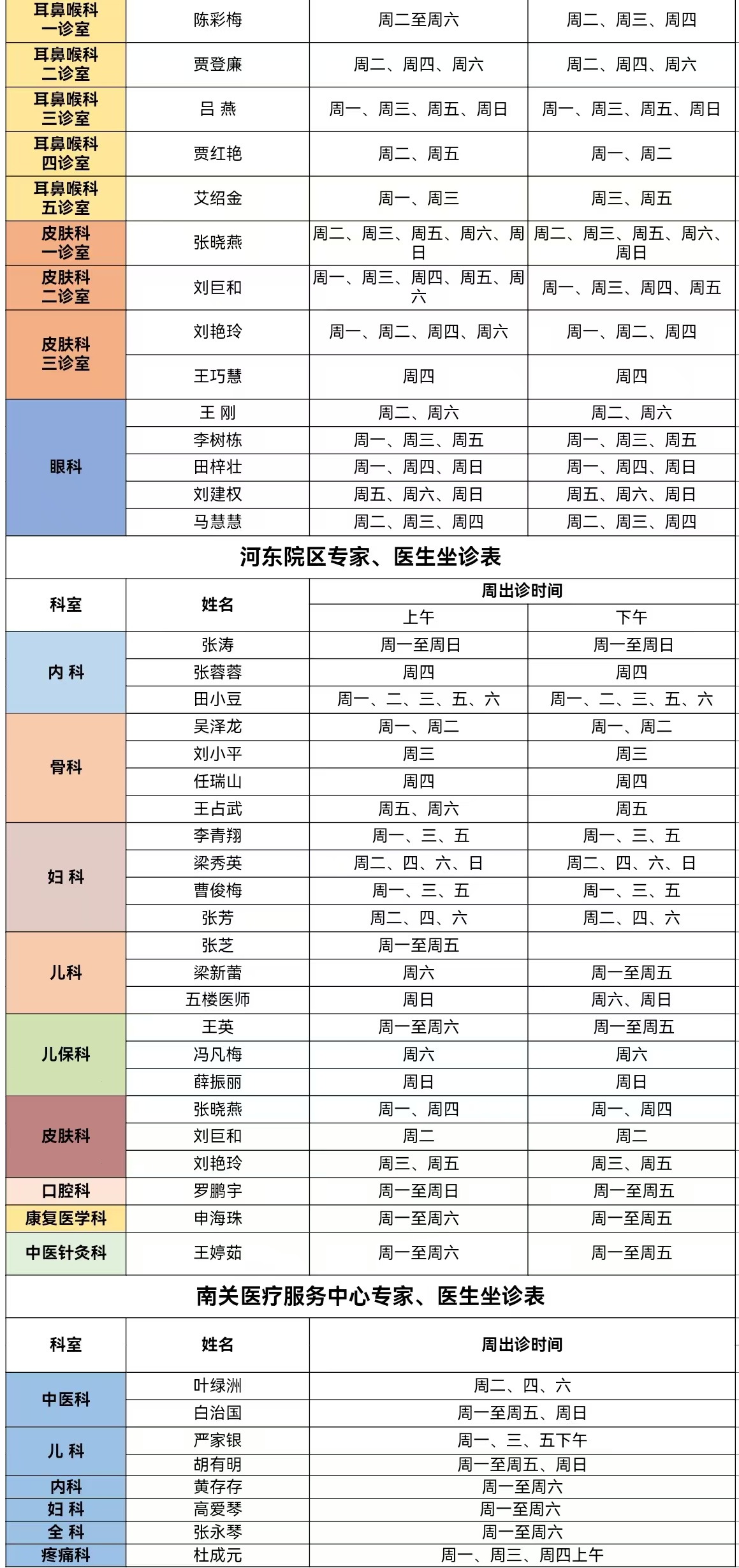 靖边县人民医院门诊专家、医生出诊信息(2月24日—3月2日)