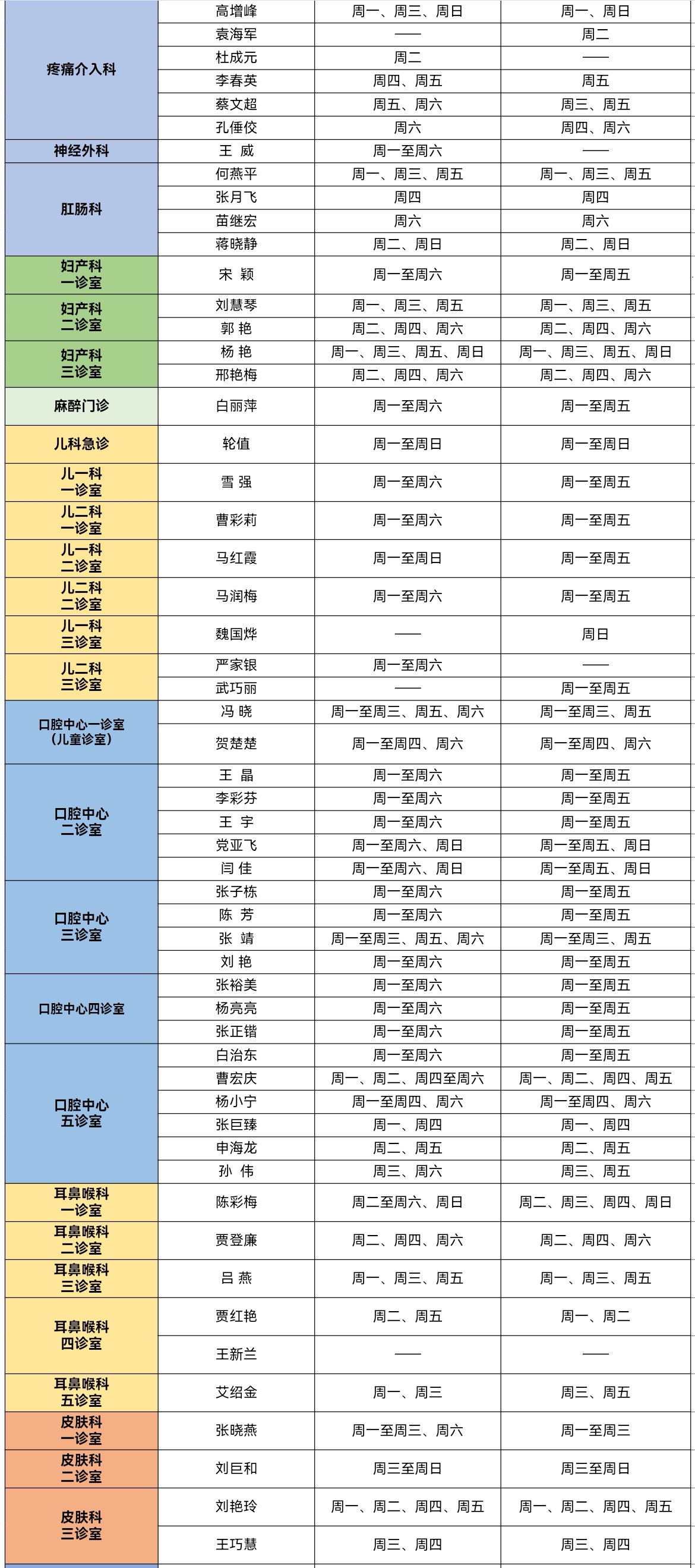 靖边县人民医院门诊专家、医生出诊信息(4月21日—4月27日)