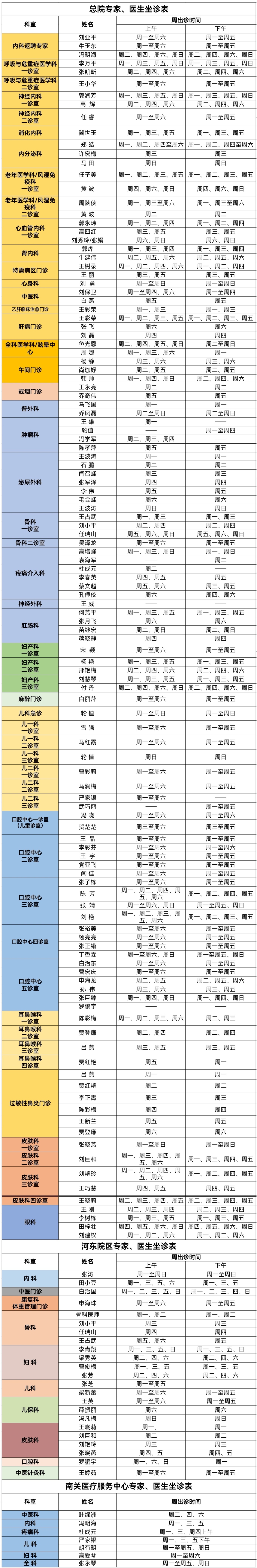 靖边县人民医院门诊专家、医生出诊信息(10月13日—10月19日)