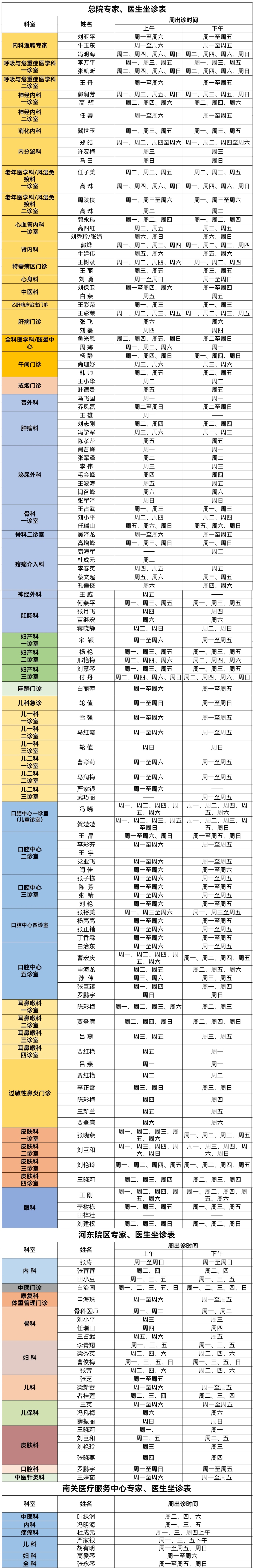 靖边县人民医院门诊专家、医生出诊信息(10月27日—11月2日)