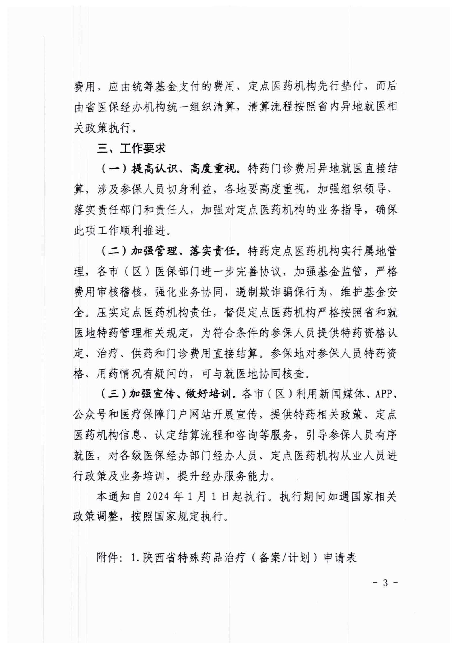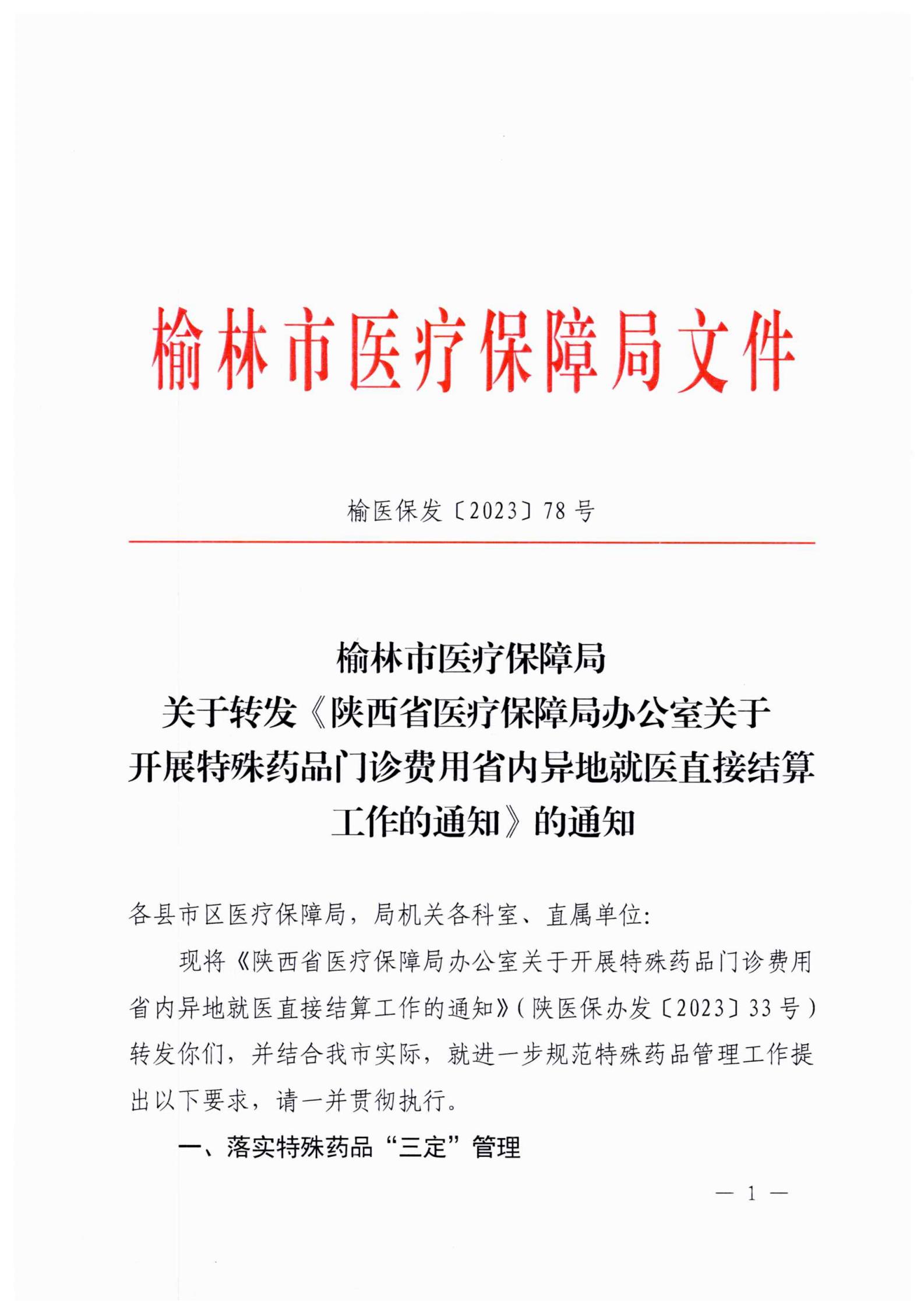 陕西省医疗保障局办公室关于开展特殊药品门诊费用省内异地就医直接结算