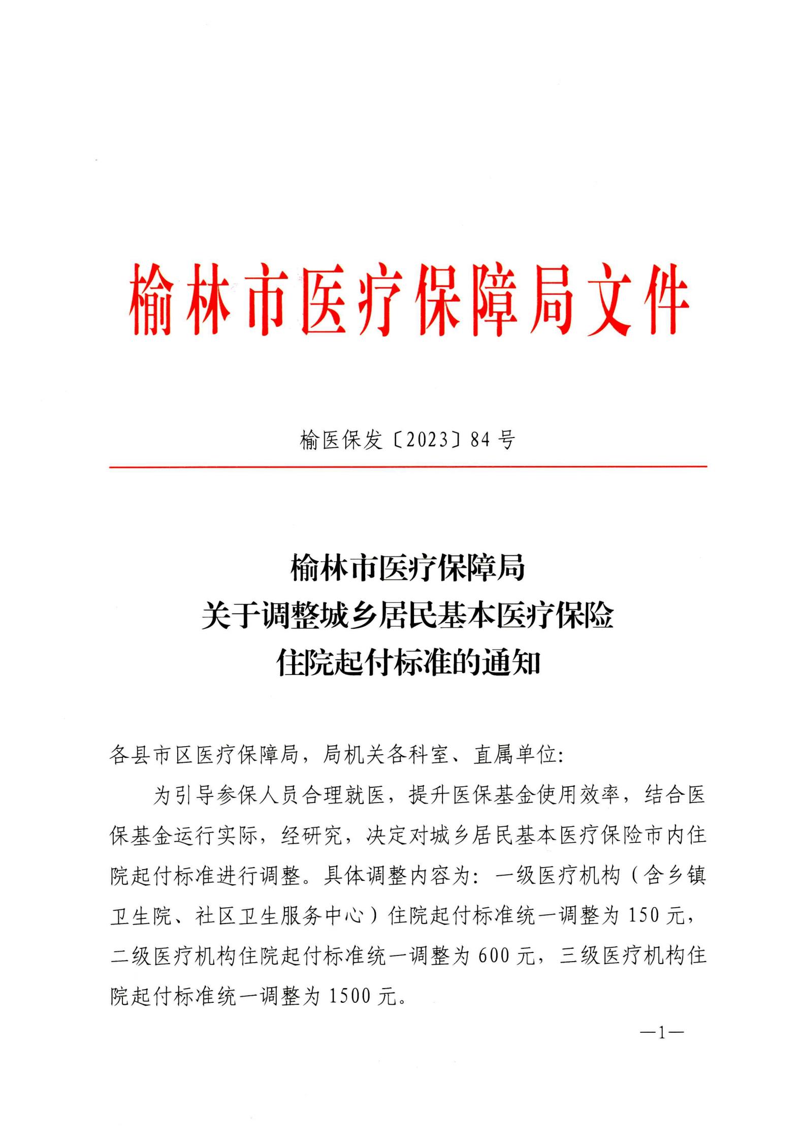 关于调整城乡居民基本医疗保险住院起付标准的通知
