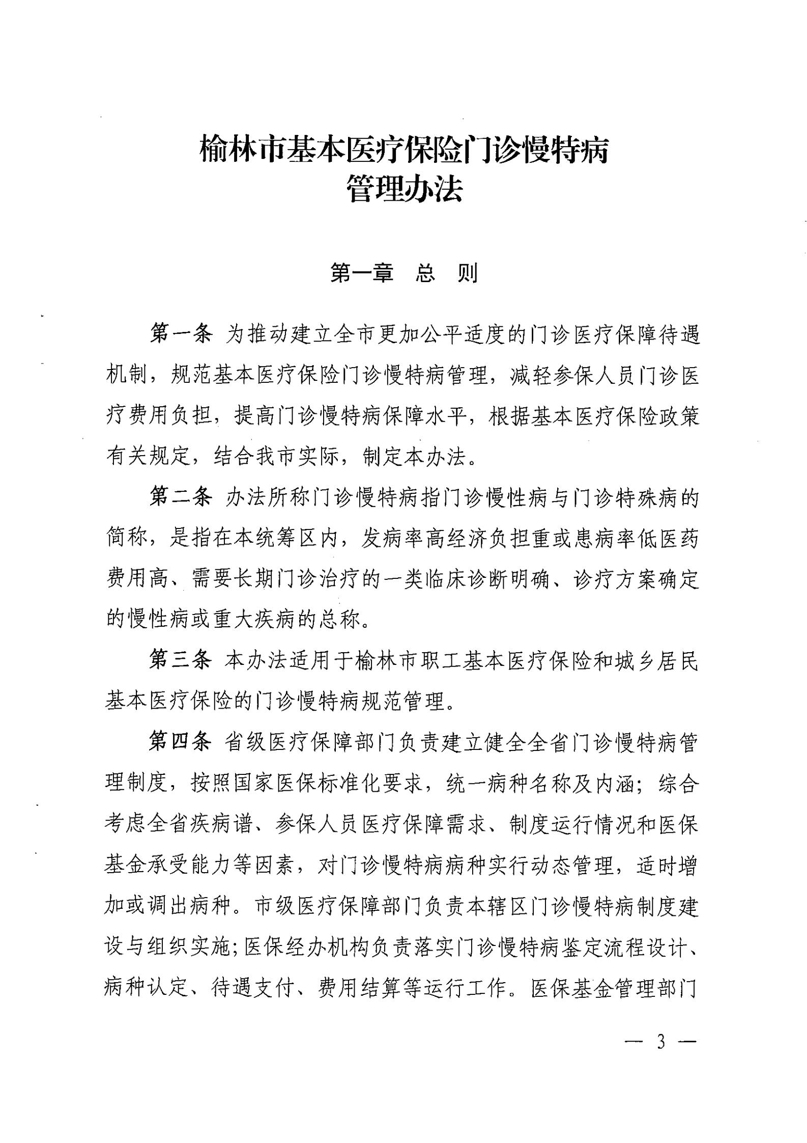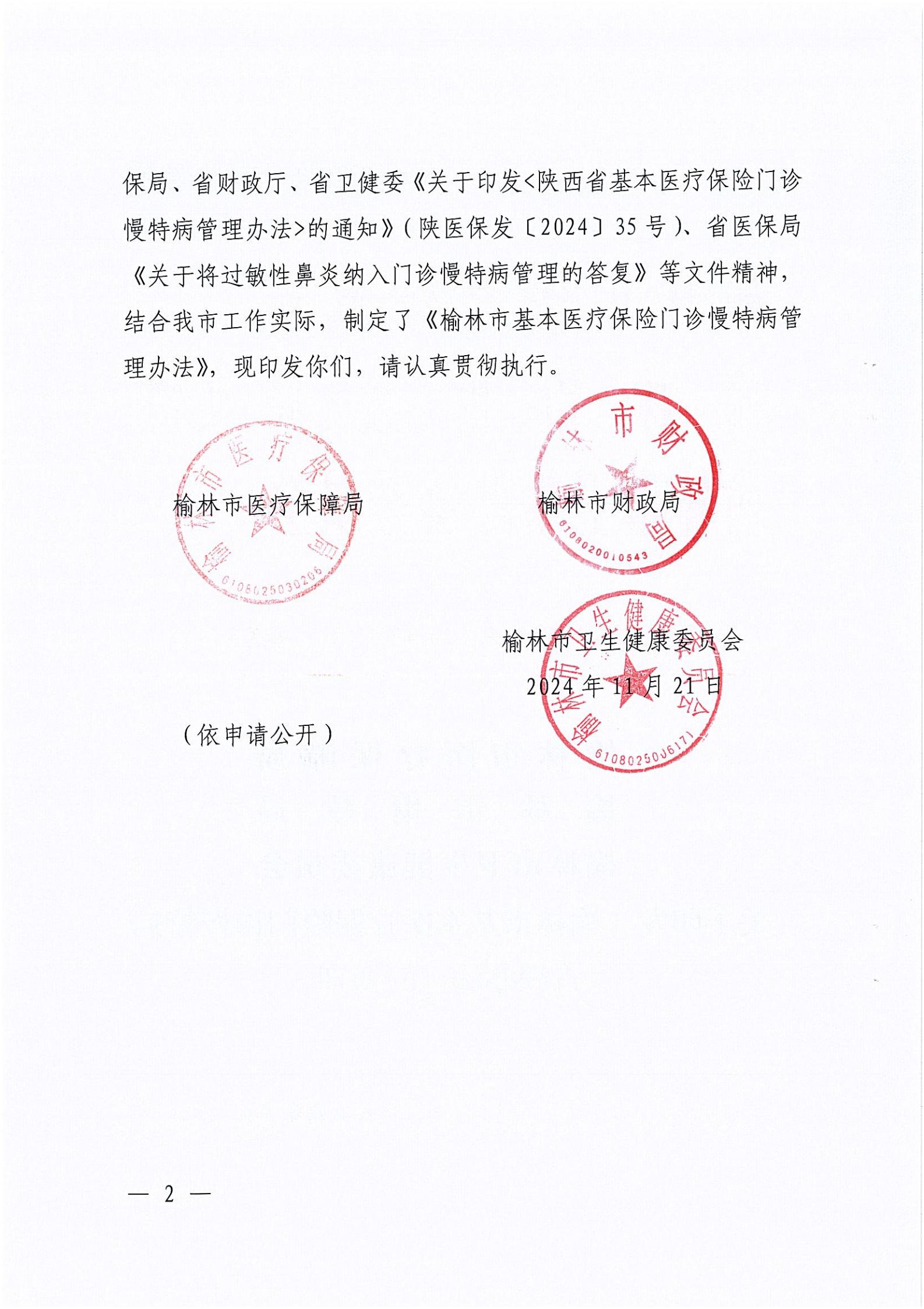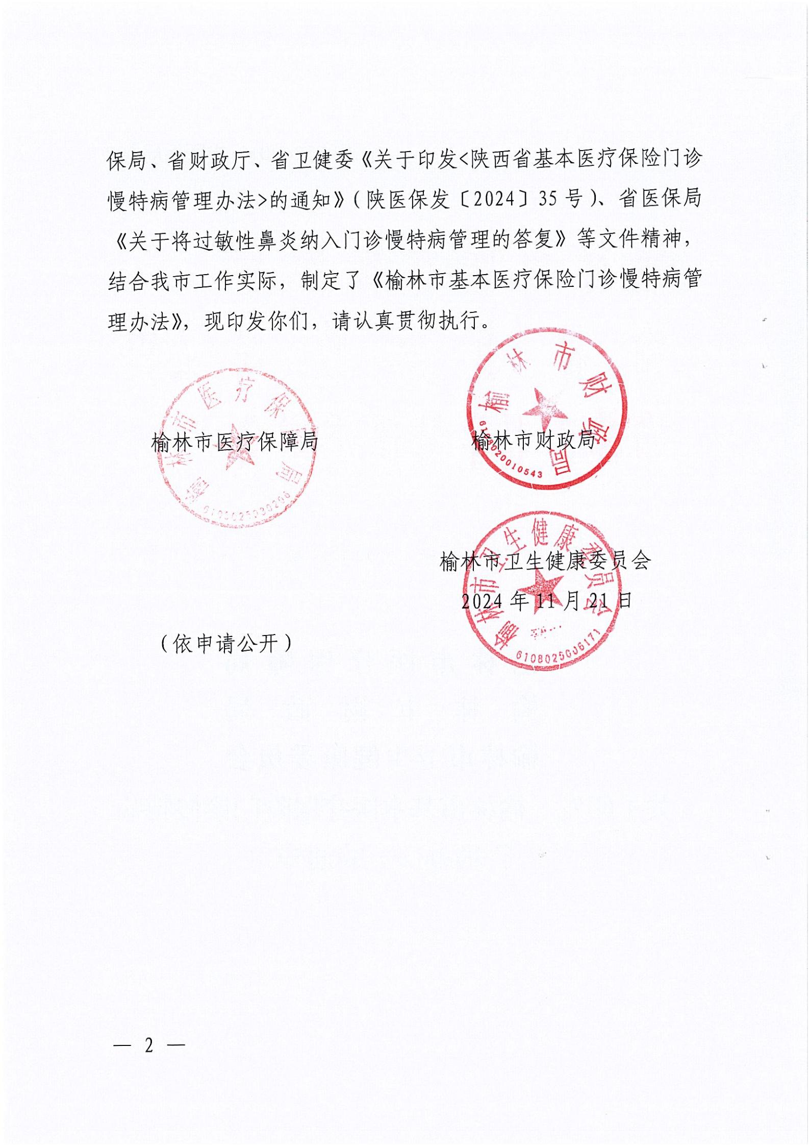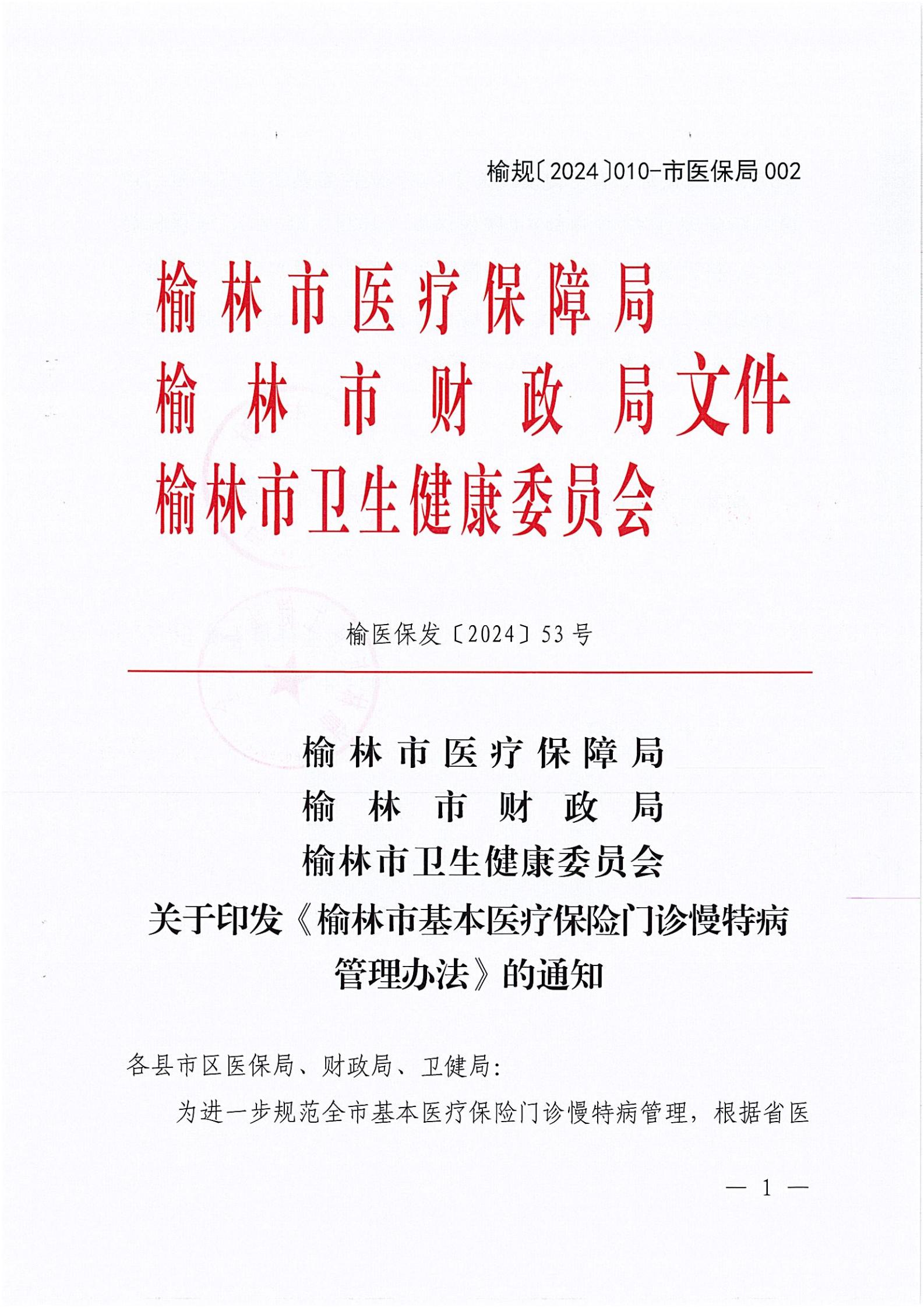 关于印发《榆林市基本医疗保险门诊慢特病管理办法》的通知