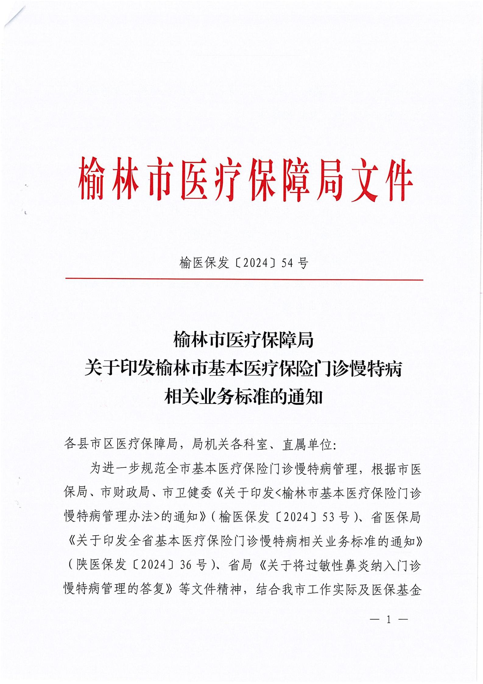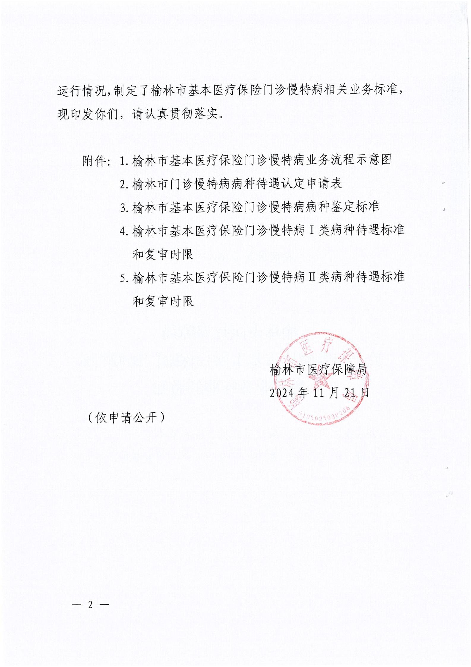 关于印发榆林市基本医疗保险门诊慢特病相关业务标准的通知