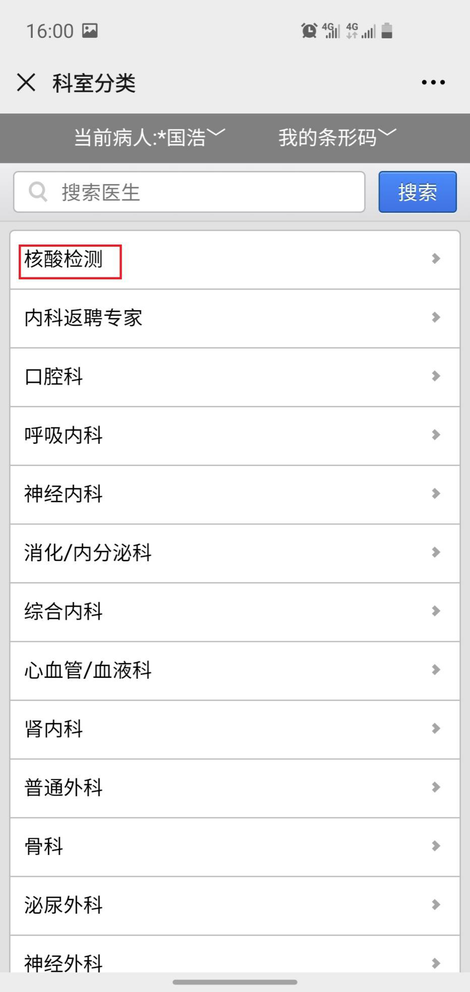 5、选择核酸检测科室