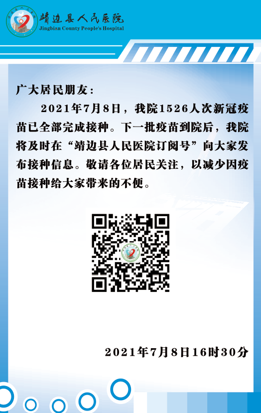 靖边县人民医院新冠疫苗接种信息发布(7月8日)