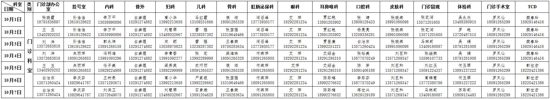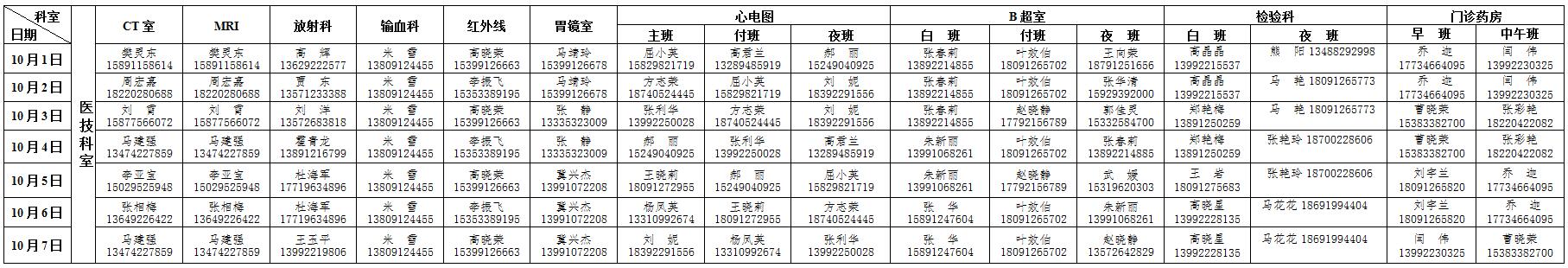 2018年国庆节放假值班表