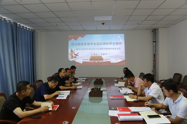 会上党总支书记马枭今组织学习了“延安精神是值得永远弘扬的革命精神 —学习习近平总书记关于弘扬延安精神的重要论述”。