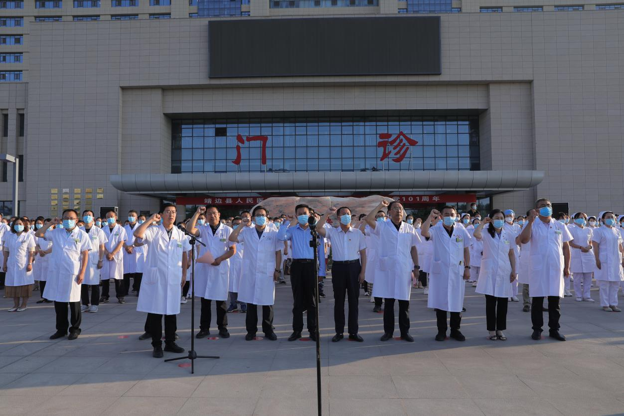 靖边县人民医院举行庆“七一”升国旗仪式