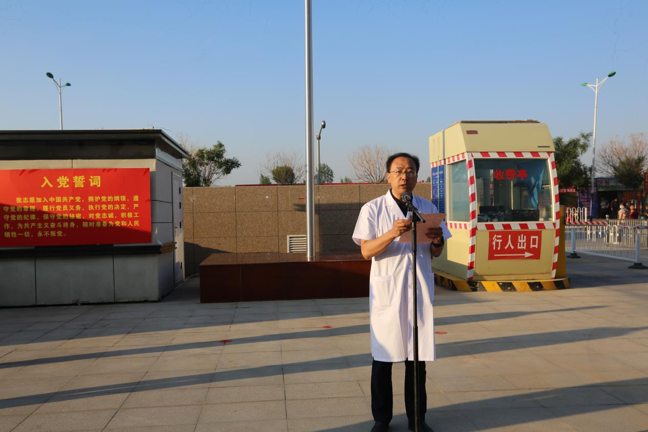 2022年7月1日,我院在南大门举行“喜迎二十大 奋进新征程”系列活动——庆“七一”升国旗仪式,县卫健局党组书记、局长薛向东、党组成员王永军,我院在院的党委班子成员,全体党员、中层及以上管理干部共计300多人参加升旗仪式。