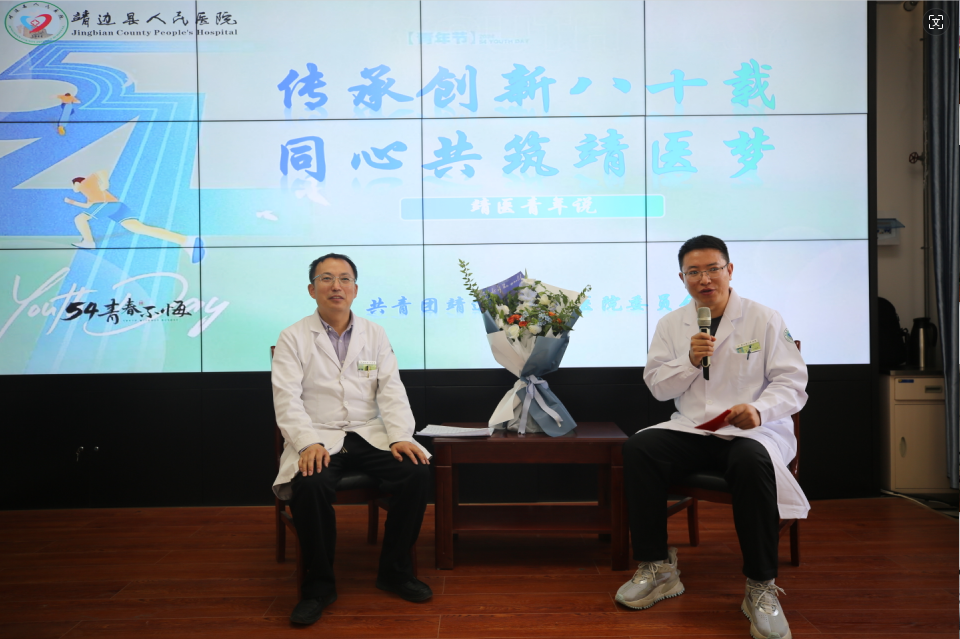 为纪念五四运动105周年,我院团委围绕“传承创新八十载,同心共筑靖医梦 ”院庆主题,于2024年5月14日,组织开展了“靖医青年说”活动。党委书记 院长马枭今、院长助理白治东、团委书记刘震、院志办主任苗天英、团委委员及各岗位青年代表参加此次活动,活动由团委副书记申海龙主持。