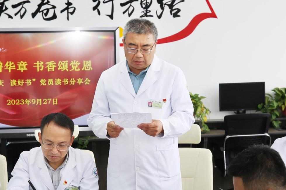 为深入学习贯彻习近平新时代中国特色社会主义思想和党的二十大精神,按照县委宣传部《关于开展“阅读,让靖边更美丽”靖边县2023年缤纷四季全民阅读活动的通知》文件精神。2023年9月27日,我院党办组织开展“国庆谱华章 书香颂党恩”读书分享活动。各党支部书记、读书分享党员代表、图书阅览室工作人员参加了活动,党委专职副书记郝世雄主持。