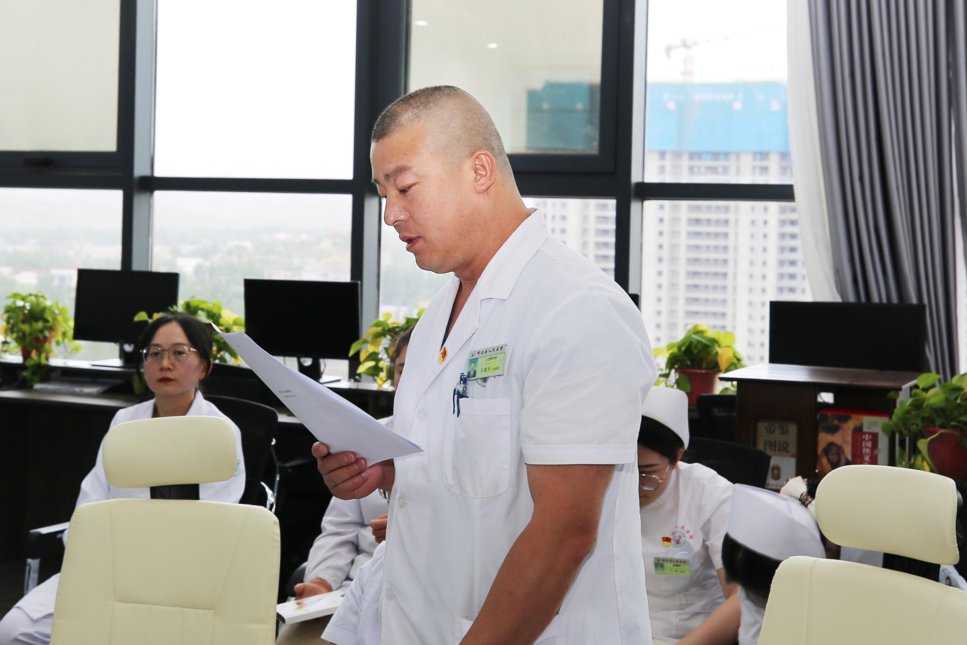 “重温入党誓词”,让党员干部感受党的神圣,坚定理想信念,激励党员干部以自身的实际行动践行“不忘医者初心 牢记健康使命”。第二党总支书记白治东领诵。