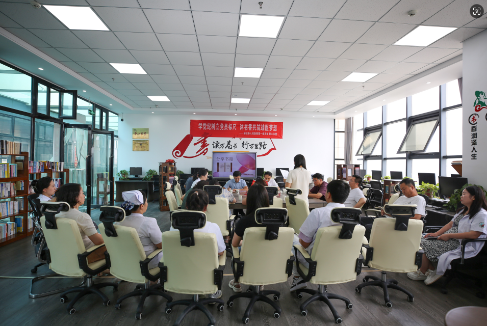 为教育引导党员干部坚定理想信念,提高党性修养,喜迎中国共产党成立103周年,2024年7月1日,我院第一党支部开展“学党纪树立党员标尺 沐书香共筑靖医梦想”庆“七一”主题党日活动。党委专职副书记郝世雄、第一党支部书记刘震及全体党员、预备党员、积极分子参加活动。活动由支部书记刘震主持。
