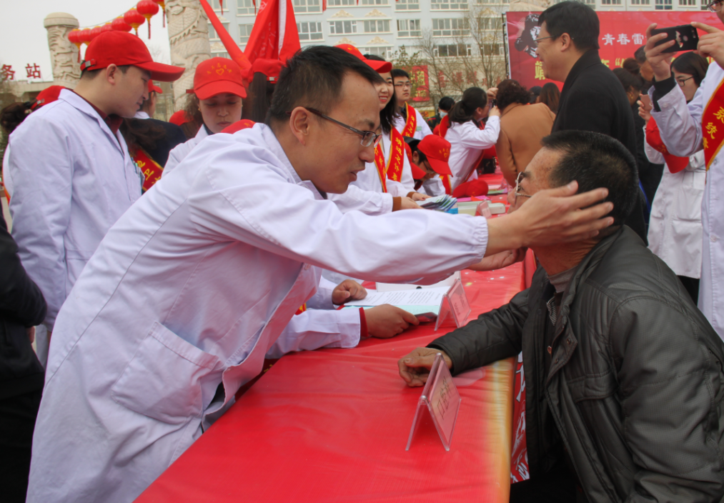 此次活动,我院共有35名党员参加。活动现场,各单位志愿者服务点人头涌动,热闹非凡。我院医务工作者身穿白大褂,在人群中如一朵朵绽放的白百合,尤为显眼。他们不仅为群众免费进行口腔检查、眼部检查、耳部检查、量血压,还热情细致地为群众发放健康体检常见病宣传资料,并且免费为群众发放了日常生活中所需药品,还为老年人免费发放了老花镜。