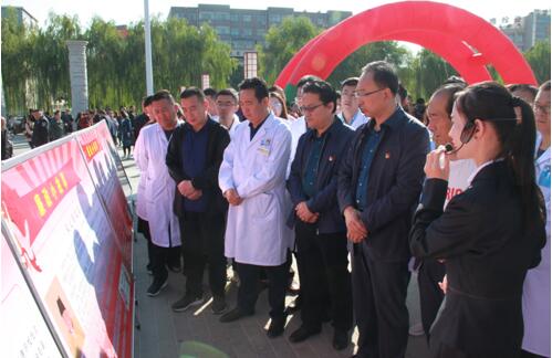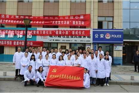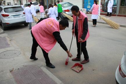 医院党总支安排各党支部党员走进统万路社区,在民乐园广场开展了免费义诊和卫生大清扫工作。