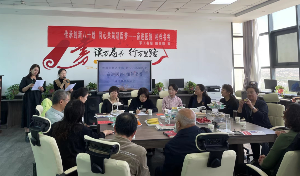 砥路八十,医谱华章。2024年,我们迎来了建院80周年华诞。一路走来,离不开一代代靖医人的博术和精业。习近平总书记曾经说过:“历史是最好的教科书”“历史是一面镜子”。为引领靖医人重温医院历史,厚植爱院情怀,传承靖医精神,同时在广大职工中营造读书氛围、激发学习热情、以书润心、以文会友,传承终身阅读的学习精神。我院职工书屋联合院史馆在4月23日“世界读书日”这一天,共同举办了建院八十周年系列活动“传承创新八十载 同心共筑靖医梦——奋进医路,相伴书香”读书分享茶话会活动,石建利、蒋昆主持。