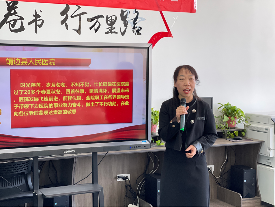 在讲述故事的环节中,退休职工袁世鸿(曾任业务副院长)、丁玉响(曾任口腔科主任)、杨晓丽(曾任牵引室主任)为大家讲述这些年医院的发展变化,尤其是近几年的变化尤为显著。医院的综合实力不断增强,这都离不开医院领导和靖医人的共同努力。随后,曹丽分享了《讲医院故事,传播医院文化》,闫钟利分享了《我是靖医人》。