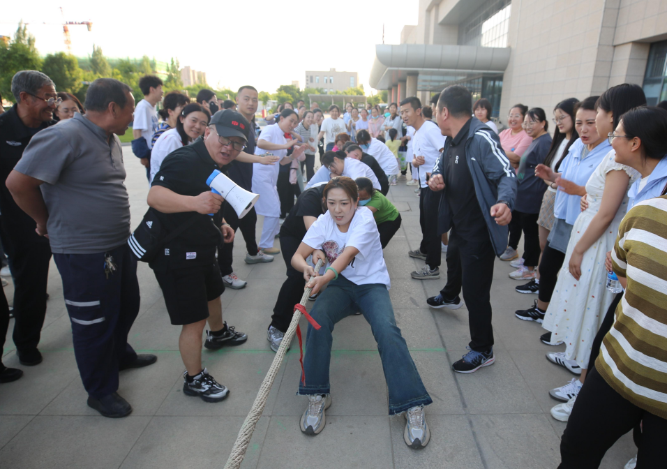 体育比赛共设6个项目,男子拔河、女子拔河、跳绳、踢毽子、乒乓球、台球。来自全院各科室、各部门的医务人员500多人参加了此次体育比赛活动。