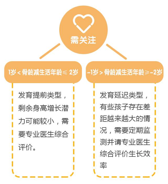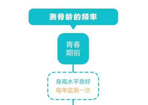 3岁以后应每隔1-2年测量一次骨龄了解孩子的实际发育水平,判断孩子身高生长情况。尤其是对于身高偏矮(矮小)、生长速率缓慢(3岁-青春期前生长速率5-7cm/年)、性早熟(女孩8岁前乳房发育,男孩9岁前睾丸容积增大)、青春期、肥胖、生长过快(青春期前大于8cm/年)的儿童,更应该定期监测骨龄,以免错过最佳生长干预时间。