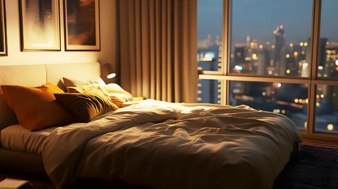 卧室环境应安静舒适,根据个人的习惯保持适宜的光线强度,室内温度在20℃—24℃、空气湿度在40%—60%为宜,经常开窗通风。
