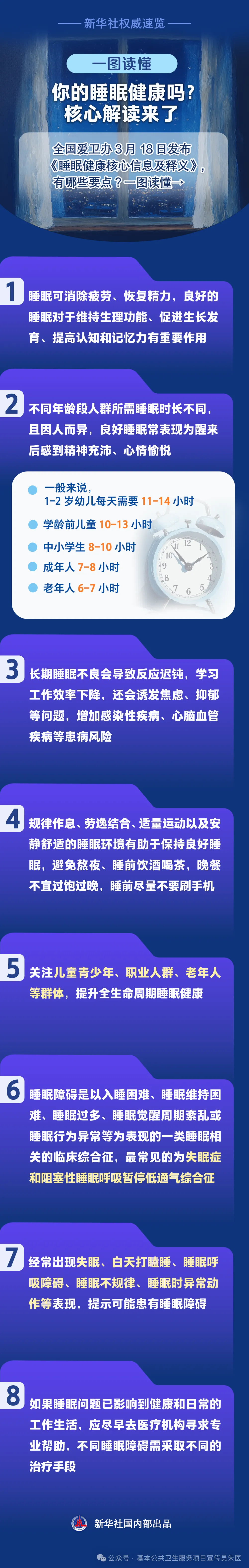 近日,全国爱卫办发布《睡眠健康核心信息及释义》。