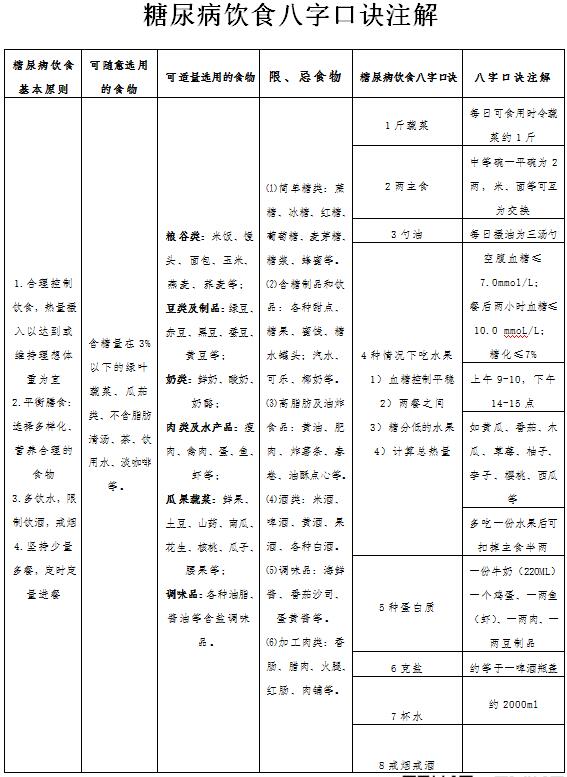 糖尿病饮食八字口诀